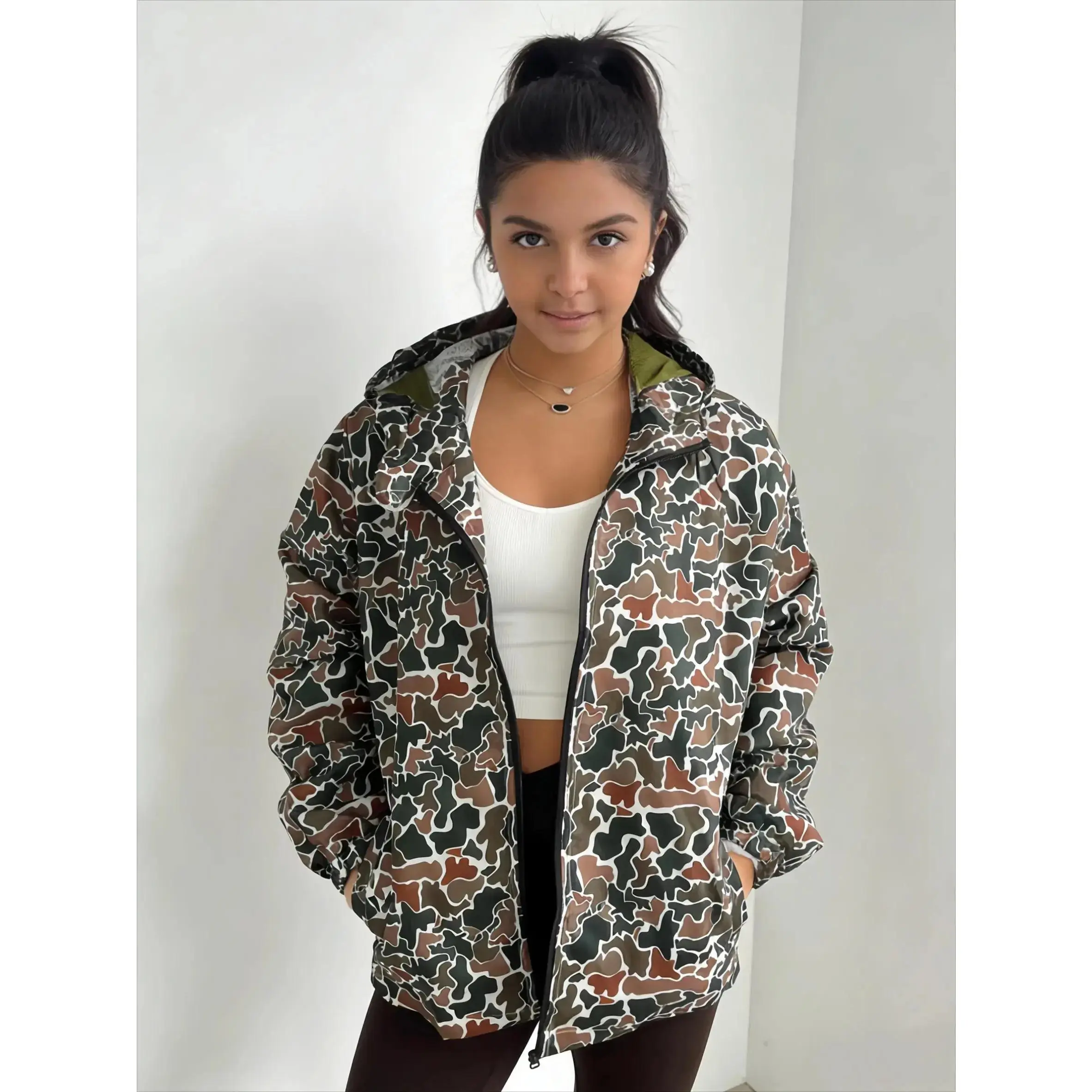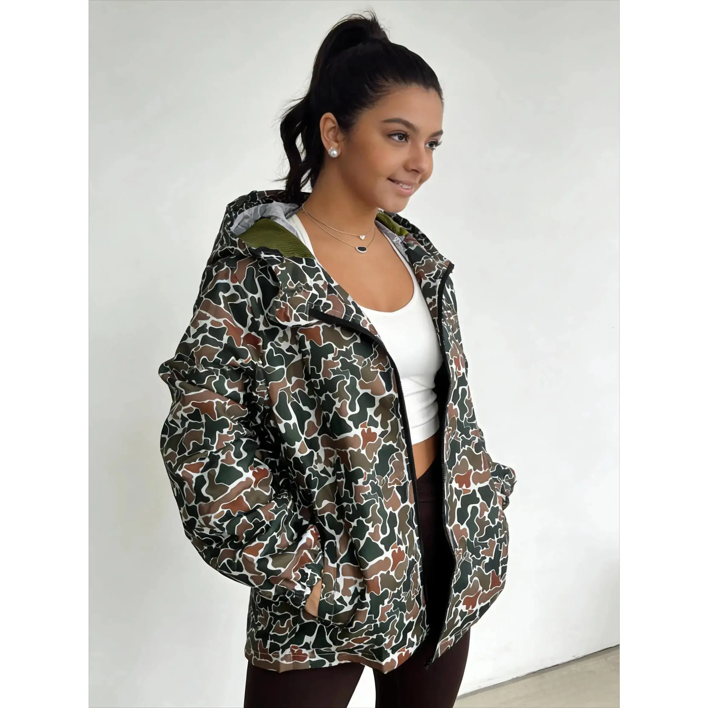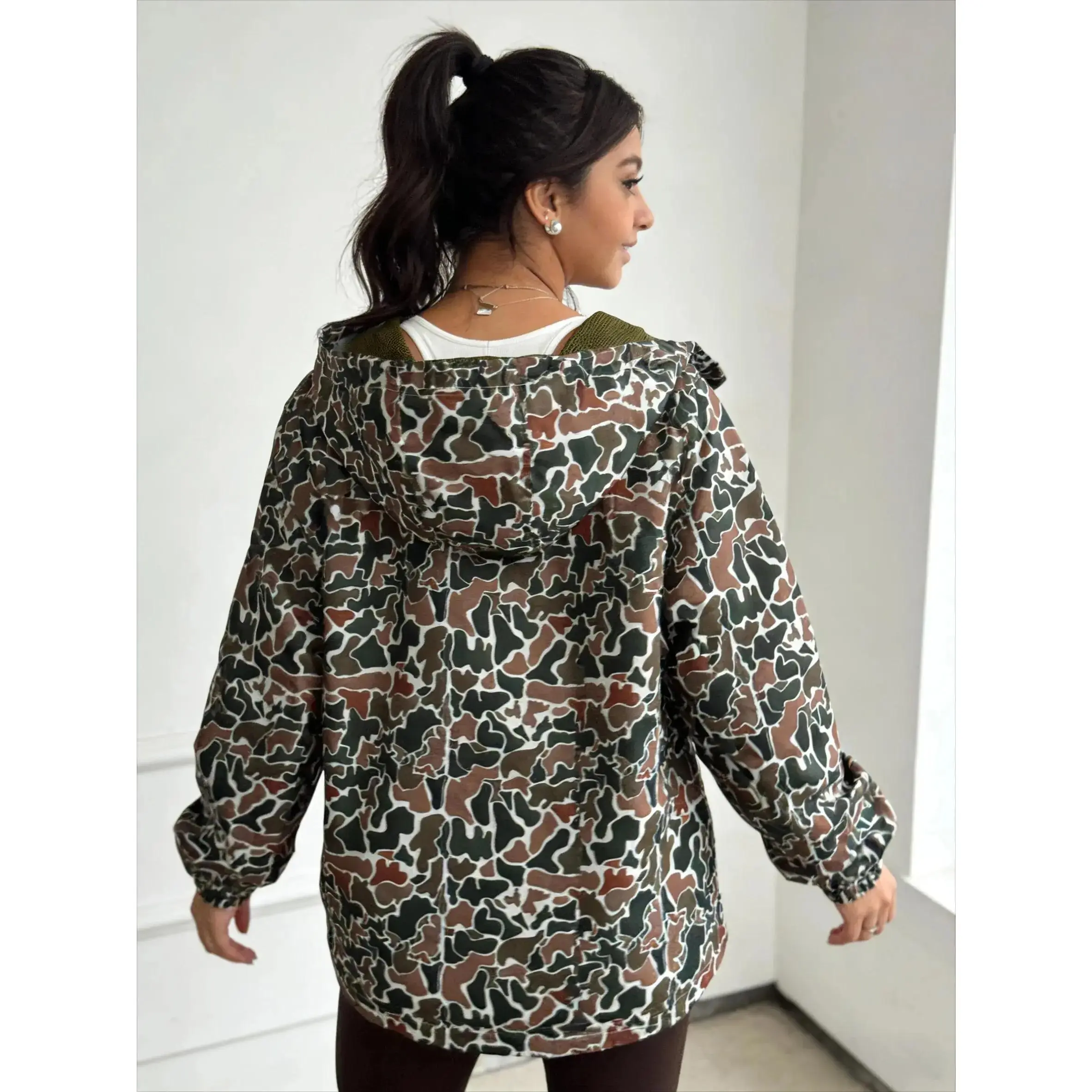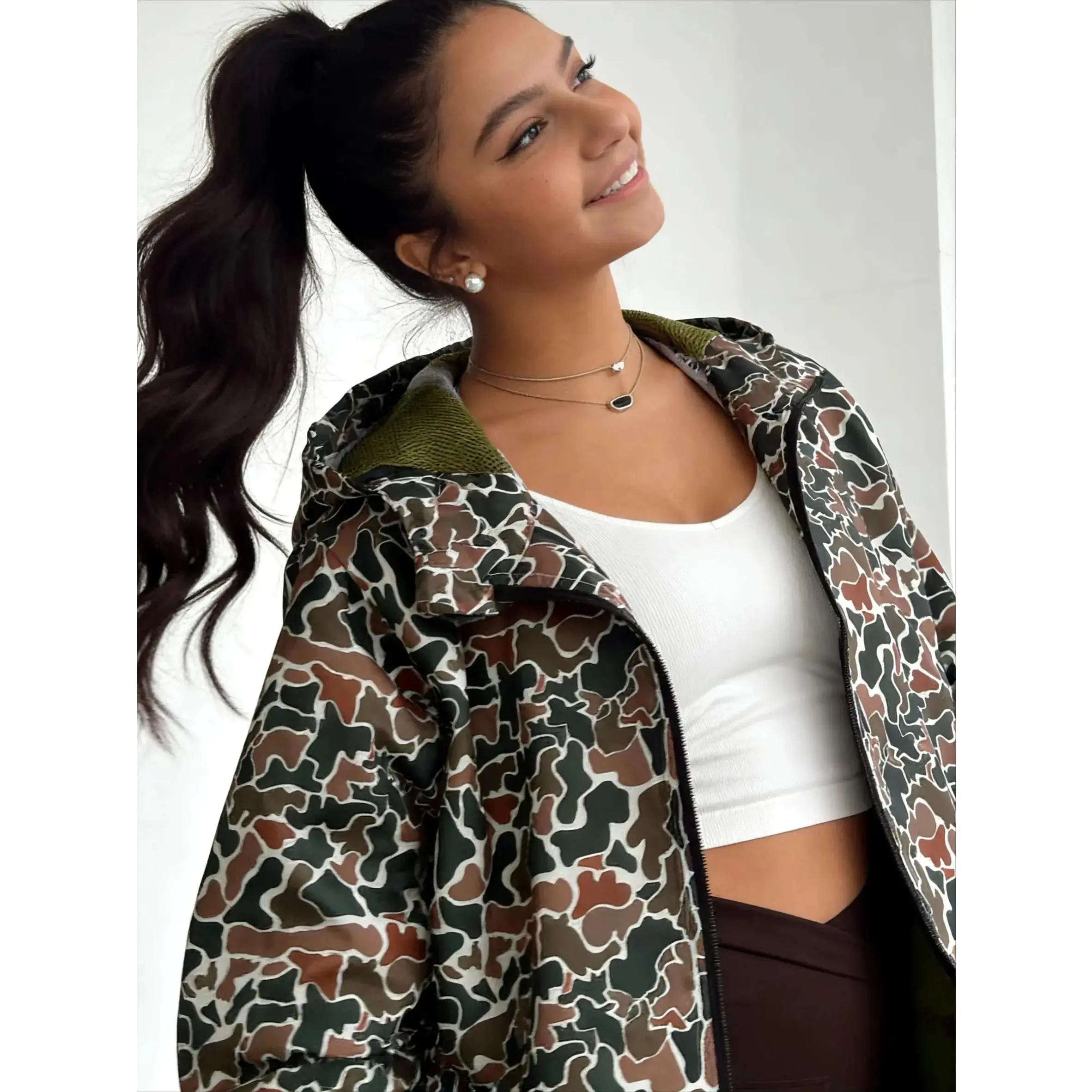 Women's Camouflage Hoodie Jacket - Full-Zip Hooded Pullover with Collar, Casual Camo Zipper Jacket for Daily Wear & Outdoor, Women's Clothing