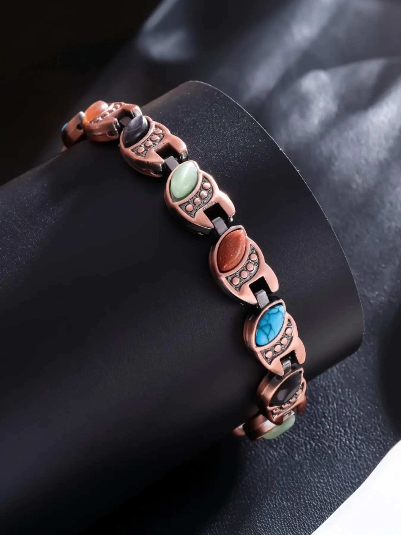 Women's Copper Bracelet, Magnetic Stone Bangle, Vintage Geometric Alloy Jewelry, Casual Fashion Gift, Includes Adjuster and Box