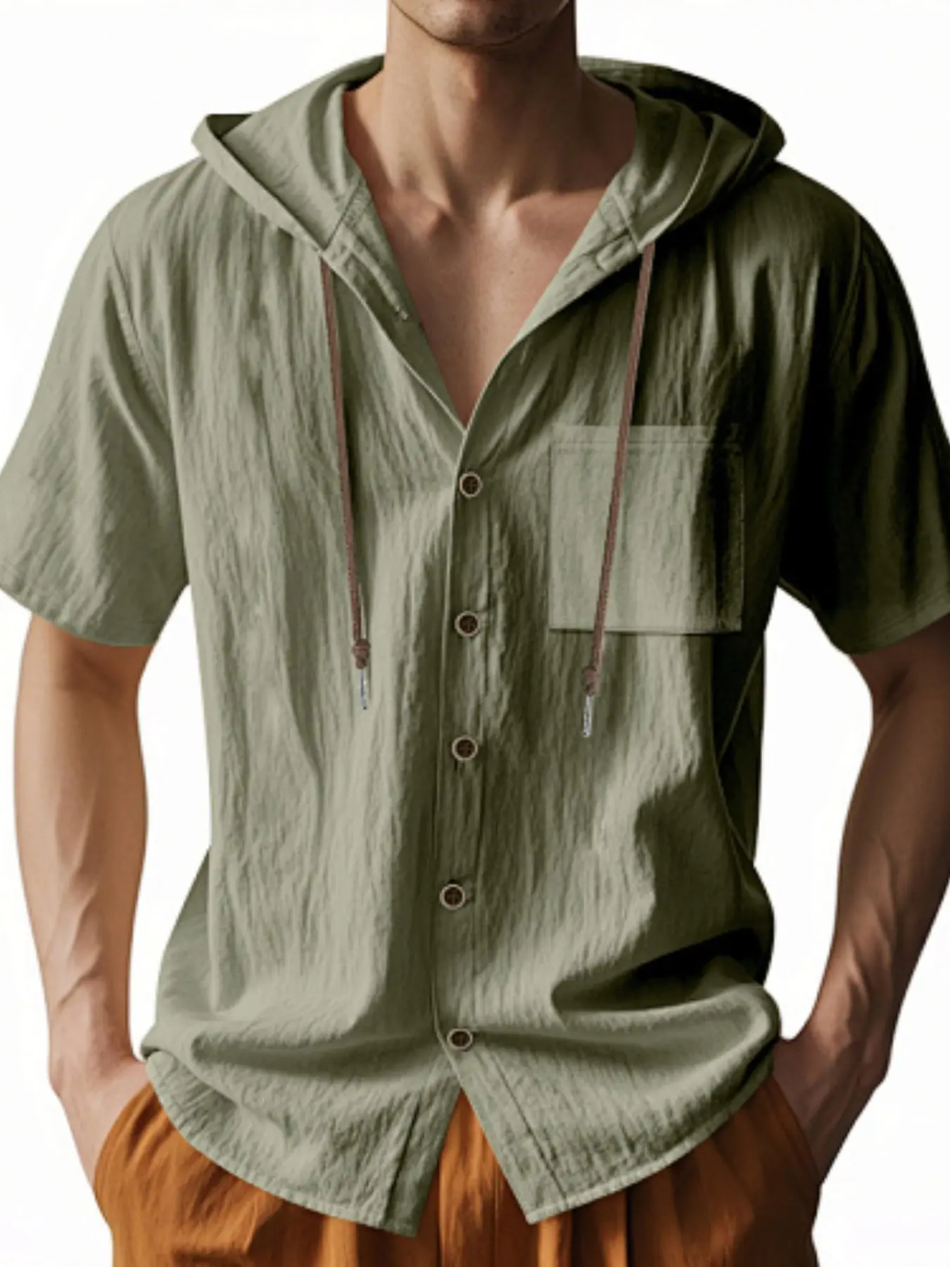 Men's Loose Linen Shirt Long Sleeve Hooded Beach Casual Jacket, Fall Fashion European Style, Trendy Design, Comfortable Fit