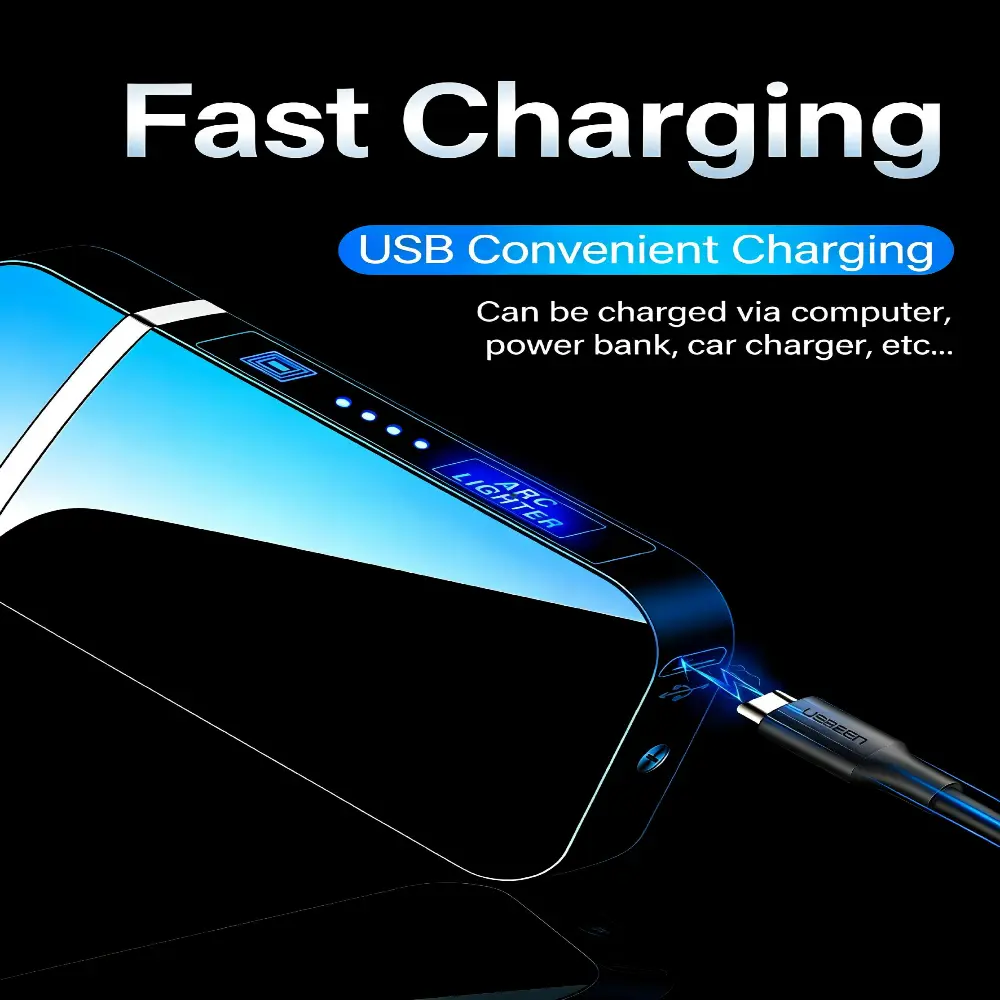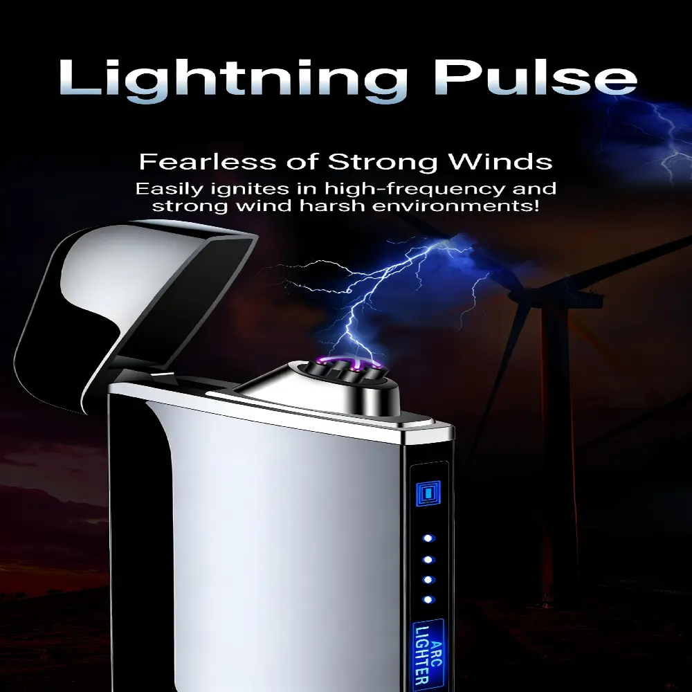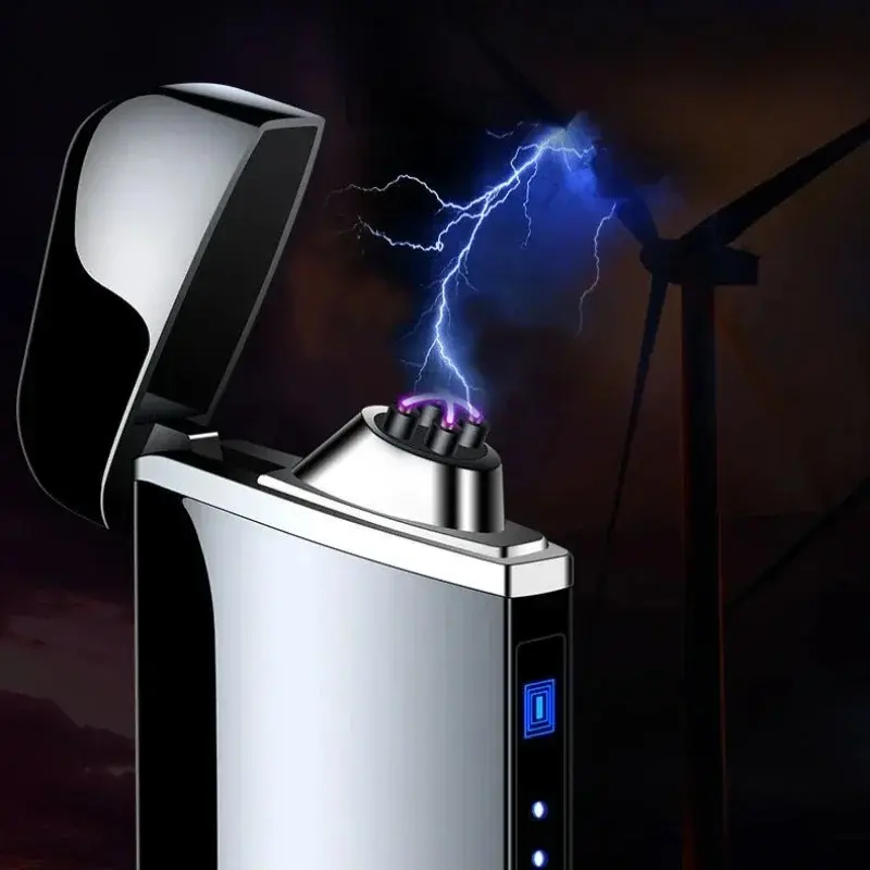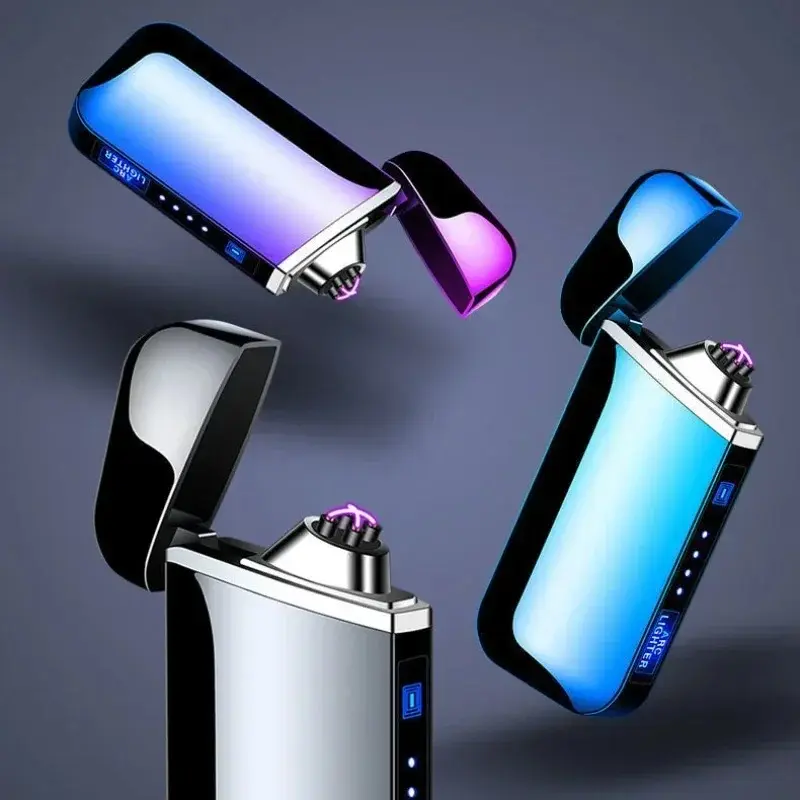 Smart Windproof Electric Metal Lighter Flameless Double Arc Plasma Lighter USB Rechargeable with LED Power Display Touch Sensor Portable Windproof Lighter for Outdoor Camping Daily Use Hot Selling