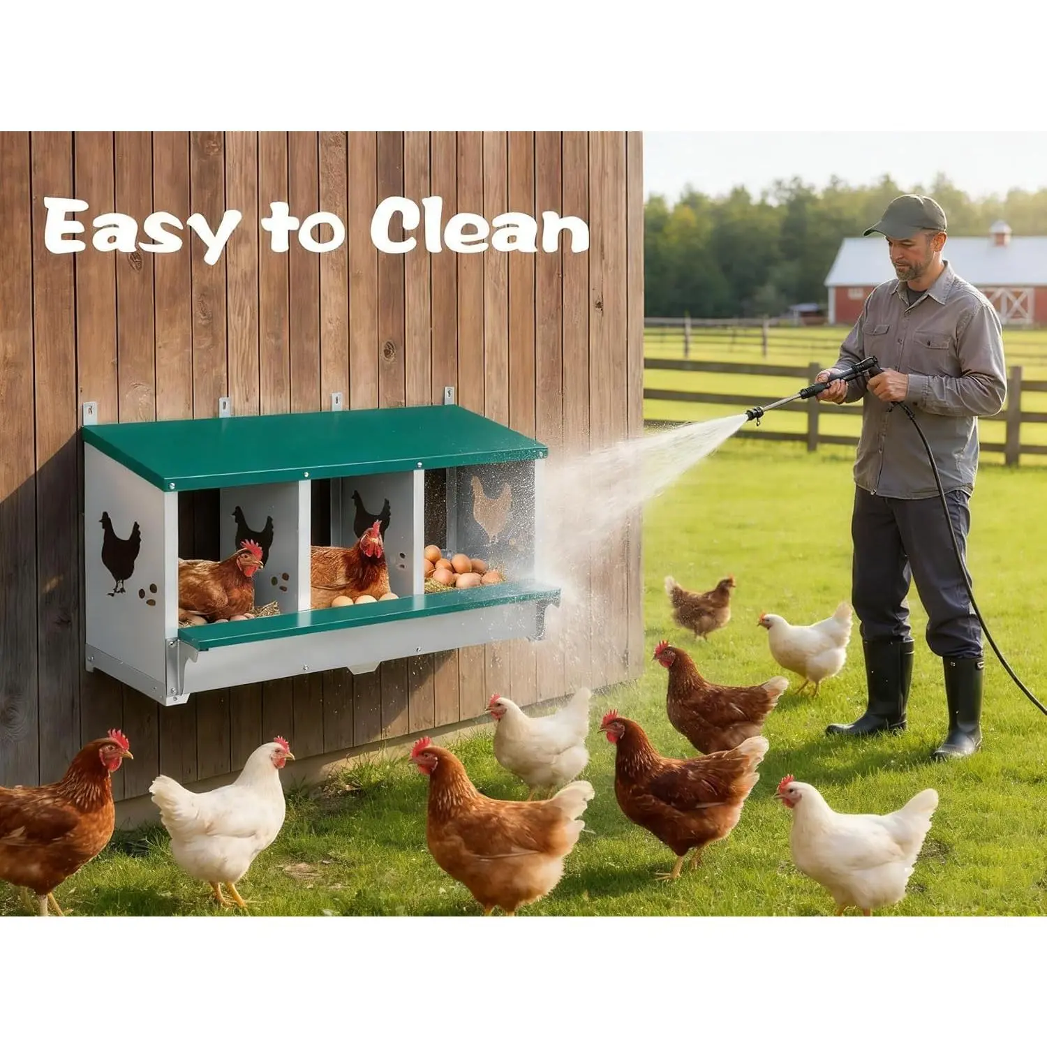 [EASY EGG COLLECTION & CLEANING] - After hens leave the nest, eggs can be easily collected by hand through the front opening. The removable dividers and nest pads allow for quick cleaning and hygiene maintenance, keeping the nesting area sanitary    and odor-free for continuous egg production.