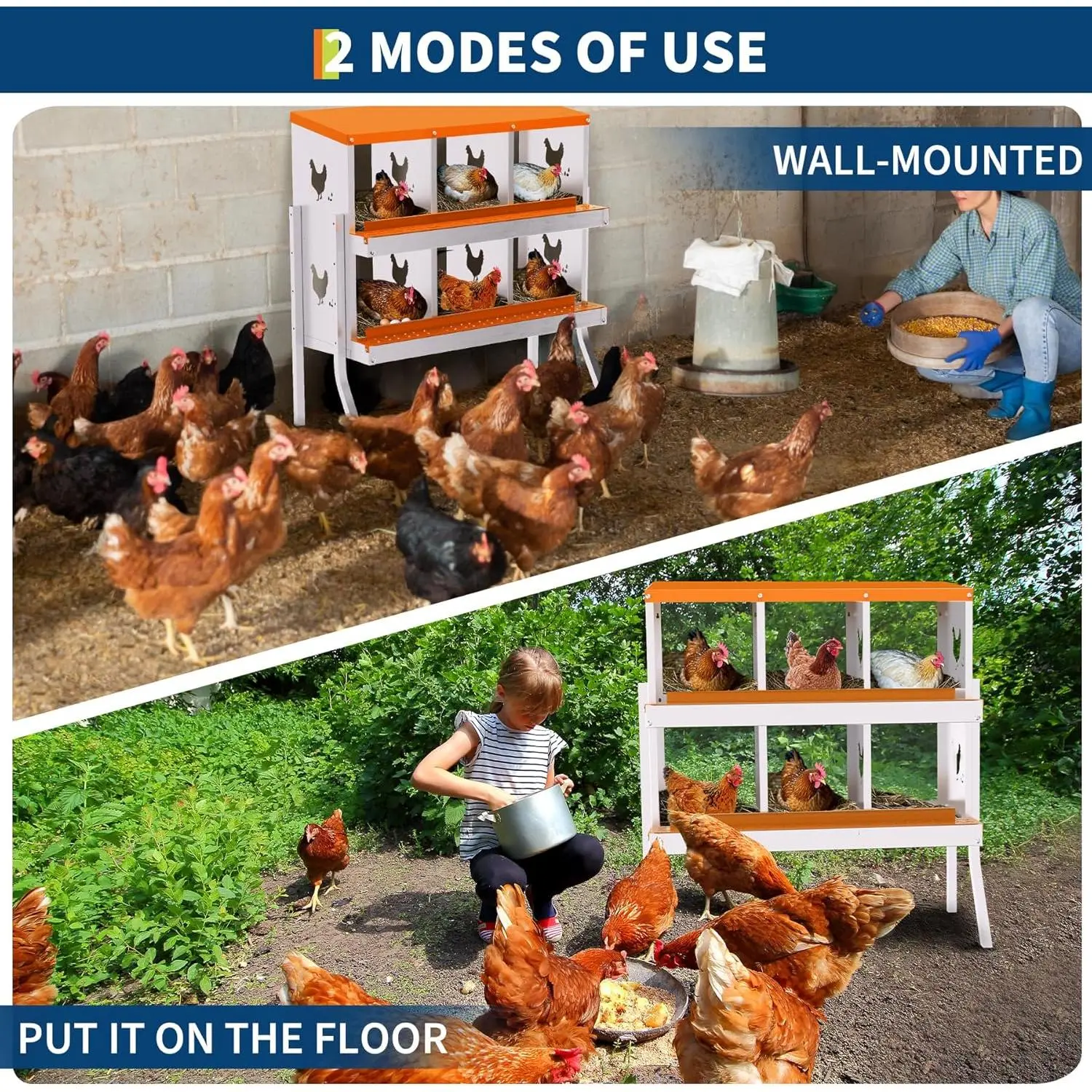 【Flexible & Easy Installation – Wall or Freestanding】: Enjoy versatility with both wall-mounted and freestanding installation options. Pre-drilled holes, included hardware, and intuitive instructions allow for quick setup—making it easy to adapt your    nesting box to any coop layout or flock size. Modular and stackable, it provides convenient solutions for farms and small backyards alike.