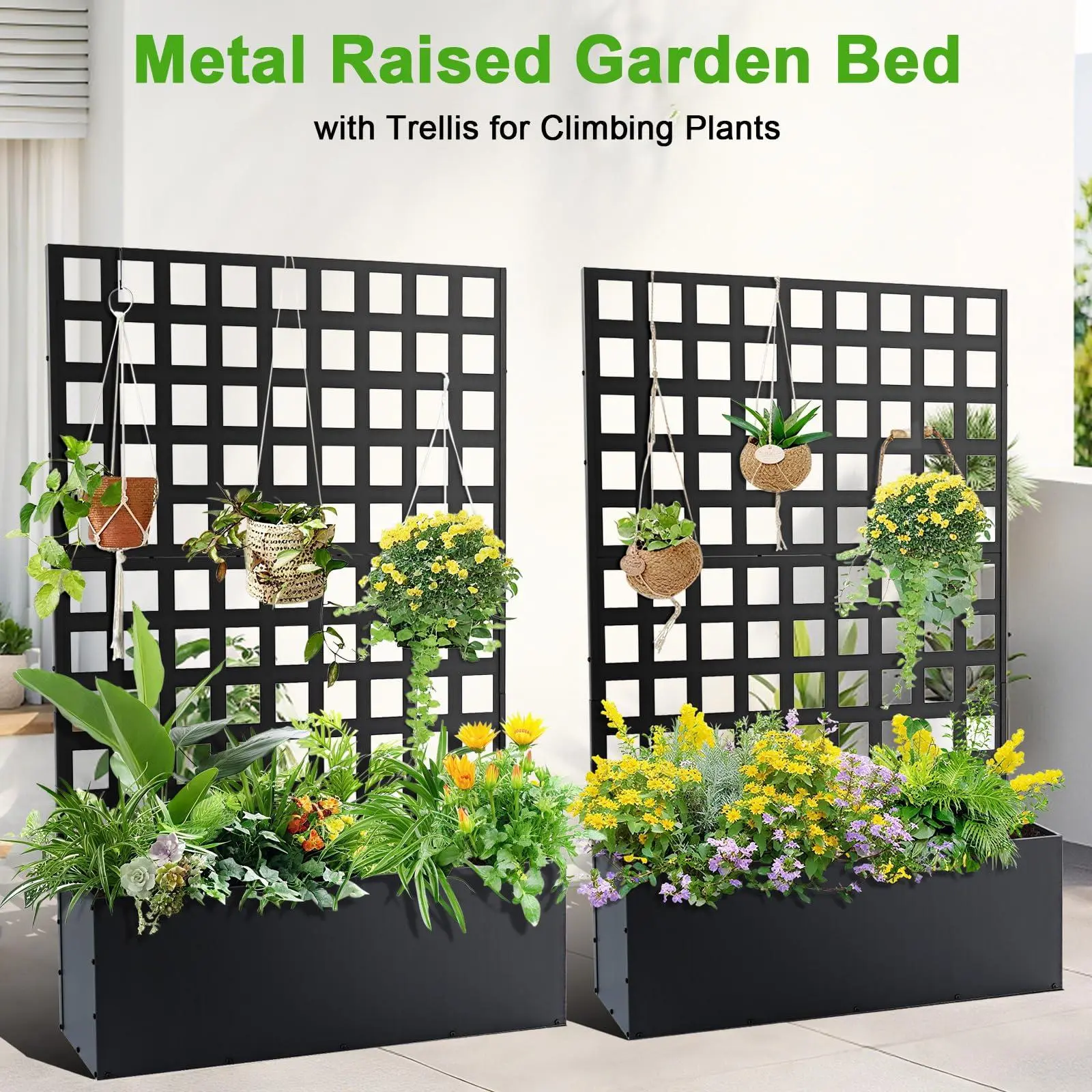 【Versatile Planter Trellis】--This multiple metal planter with diamond-shaped trellis can be used as a raised garden bed for flowers/plants, a sturdy trellis for climbing plants/vegetables, or a stylish outdoor privacy screen to enhance your outdoor living    space. Its flexible structure makes it the ultimate gardening solution for a variety of needs.