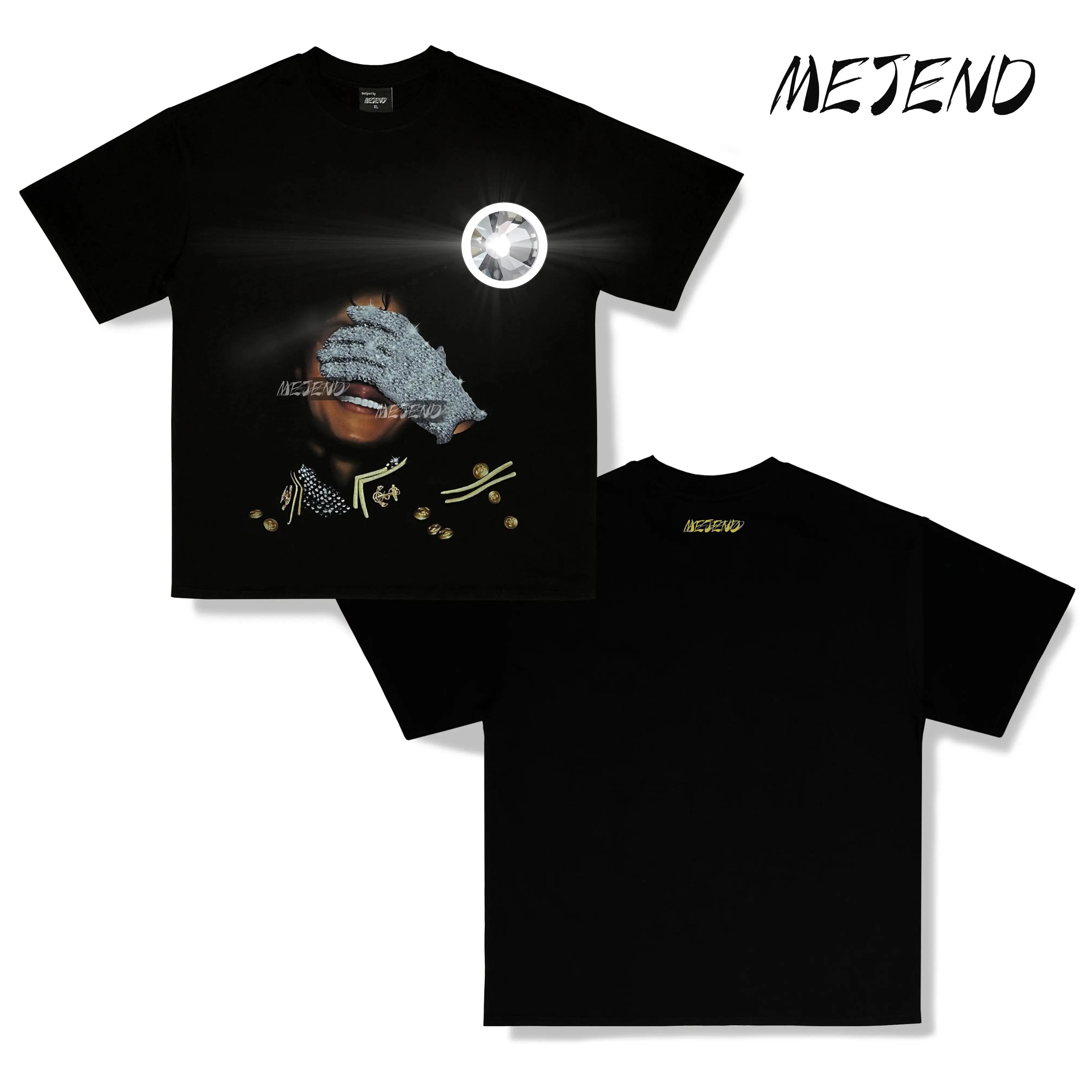 MeJend Printed Tshirt for Men, 250gsm Heavyweight Fabric, Cotton Short-Sleeve, Unique Graphic tee unisex casual heavyweight classic shirt Streetwear Top Black White Crewneck Breathable