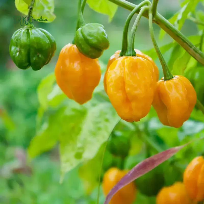 [Harvest: Pick when pods turn fully orange and glossy. Harvest often to keep production rolling. Wear gloves when handling. Watch for pests like aphids, whiteflies, spider mites, and caterpillars. Treat early with neem or insecticidal soap.]