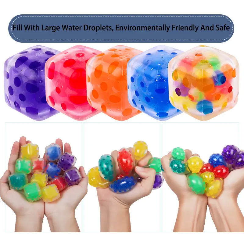 ✨ 10Pcs/Set TPR Square Water Bead Ball is ideal for stress relief and pinching. These colorful beads offer a unique squeezing experience. Perfect for releasing stress, they come in a set of 10. Ideal for school settings or as a year-end gift. Enjoy the therapeutic benefits of these grape balls.