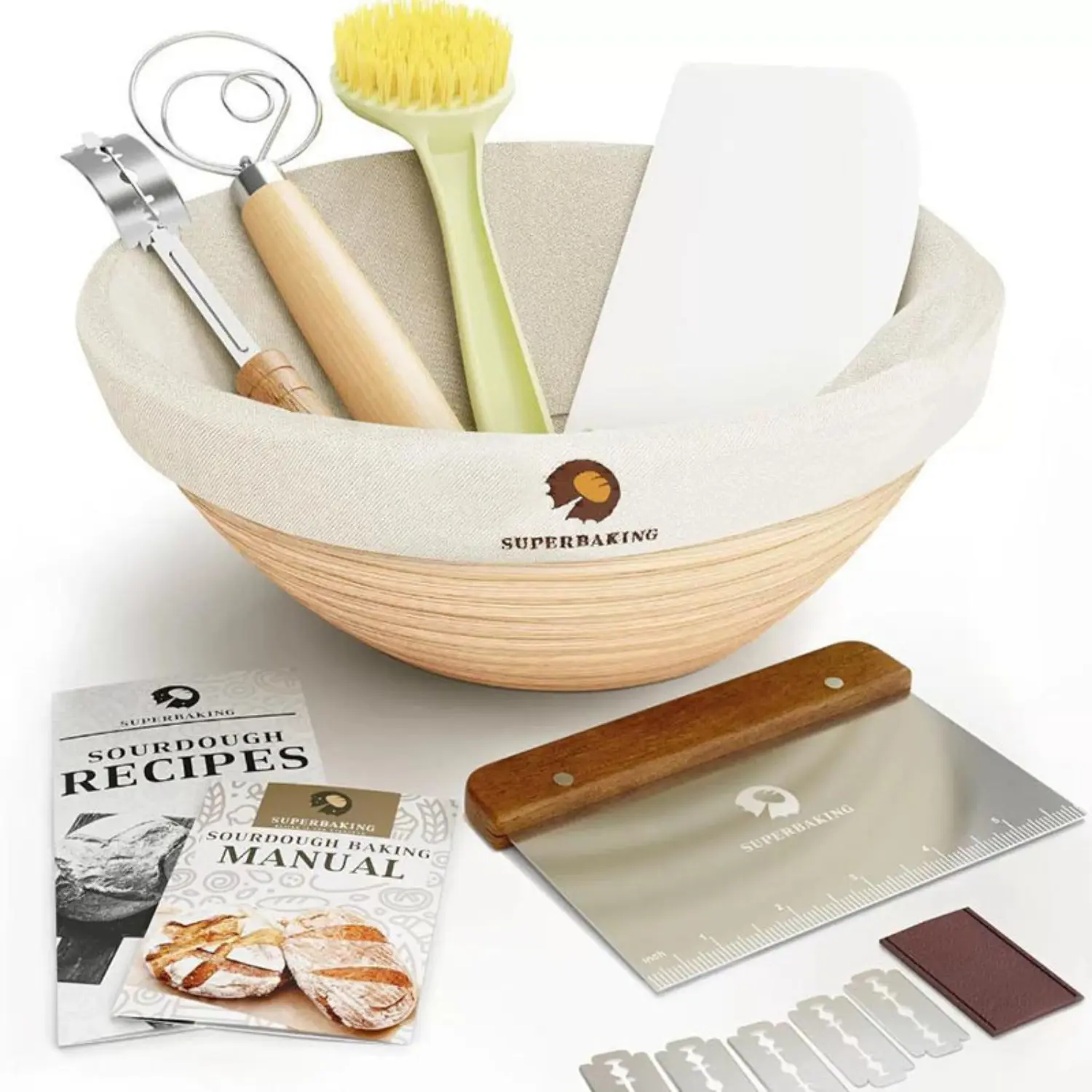 PrimPick Complete set of natural yeast starter making tools | Easy to clean and operate, suitable for both beginners and baking enthusiasts | Natural woven fermentation basket with a complete set of accessories