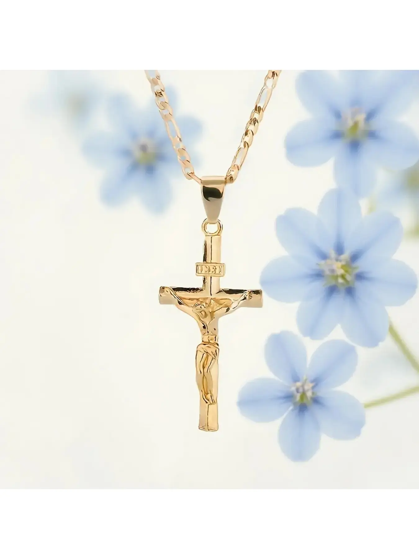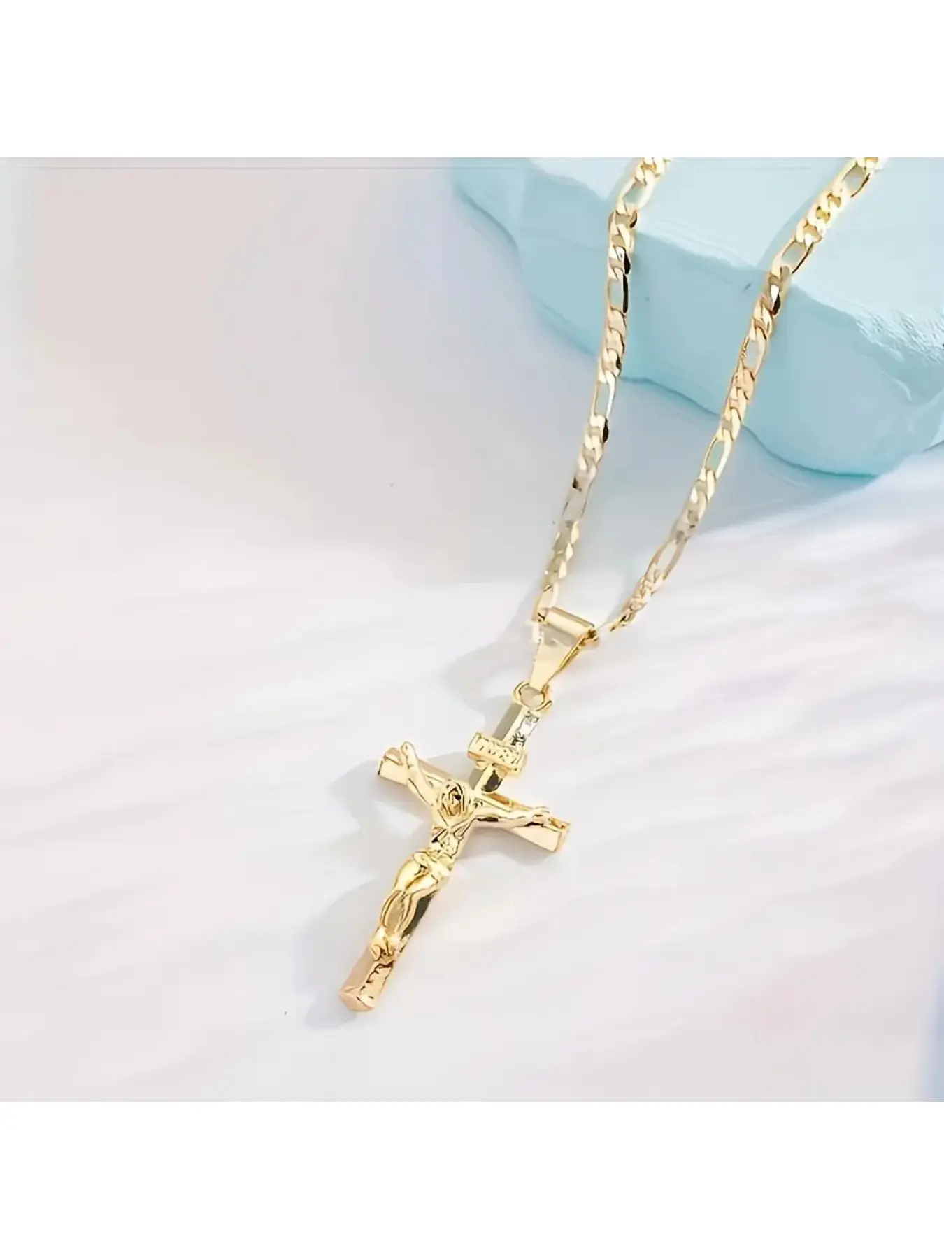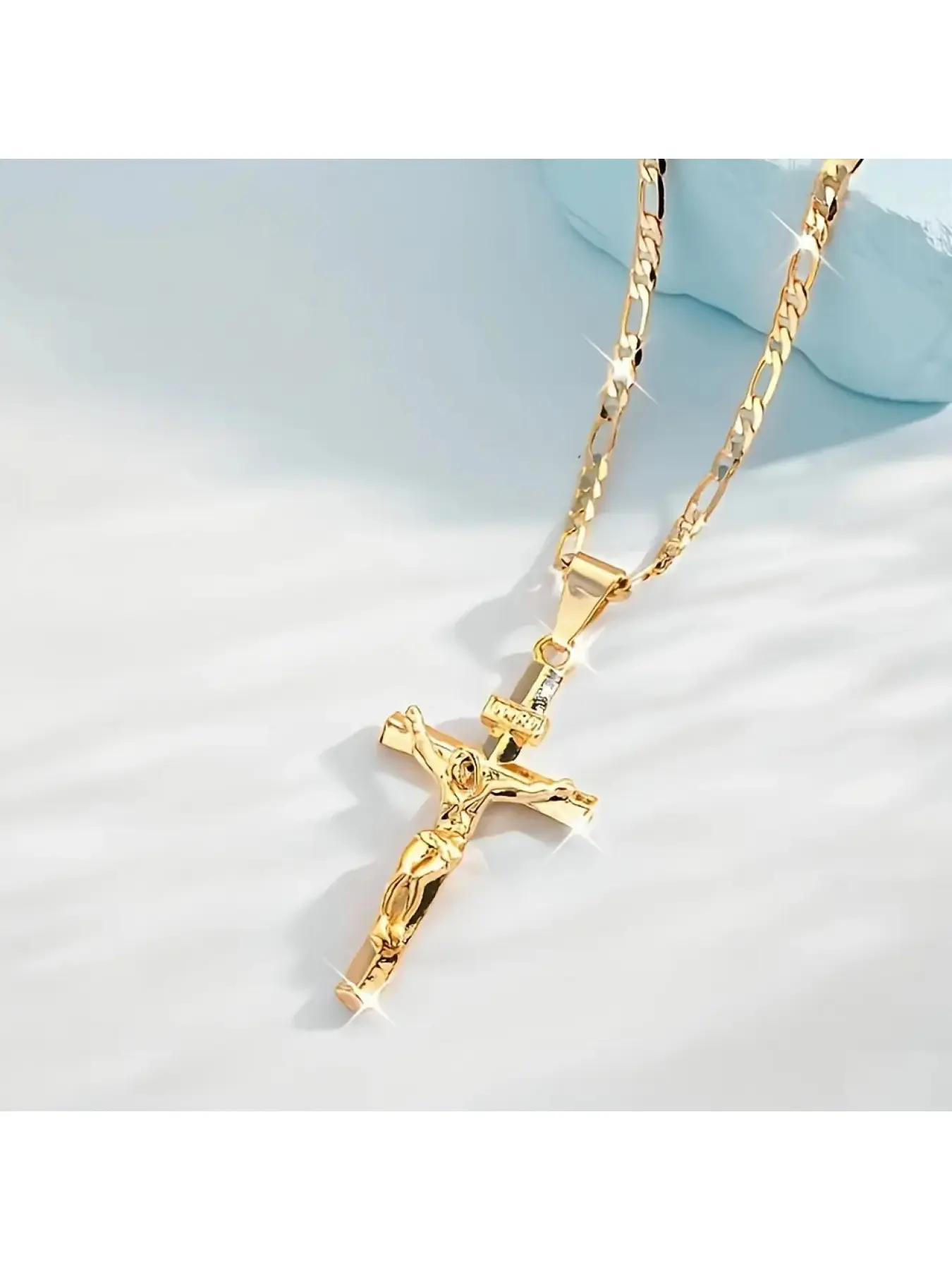 Men's Vintage 14K Gold-plated Jesus Cross Pendant Necklace With Smooth Chain Religious Jewelry For All Year Round Easter Graduation Gift