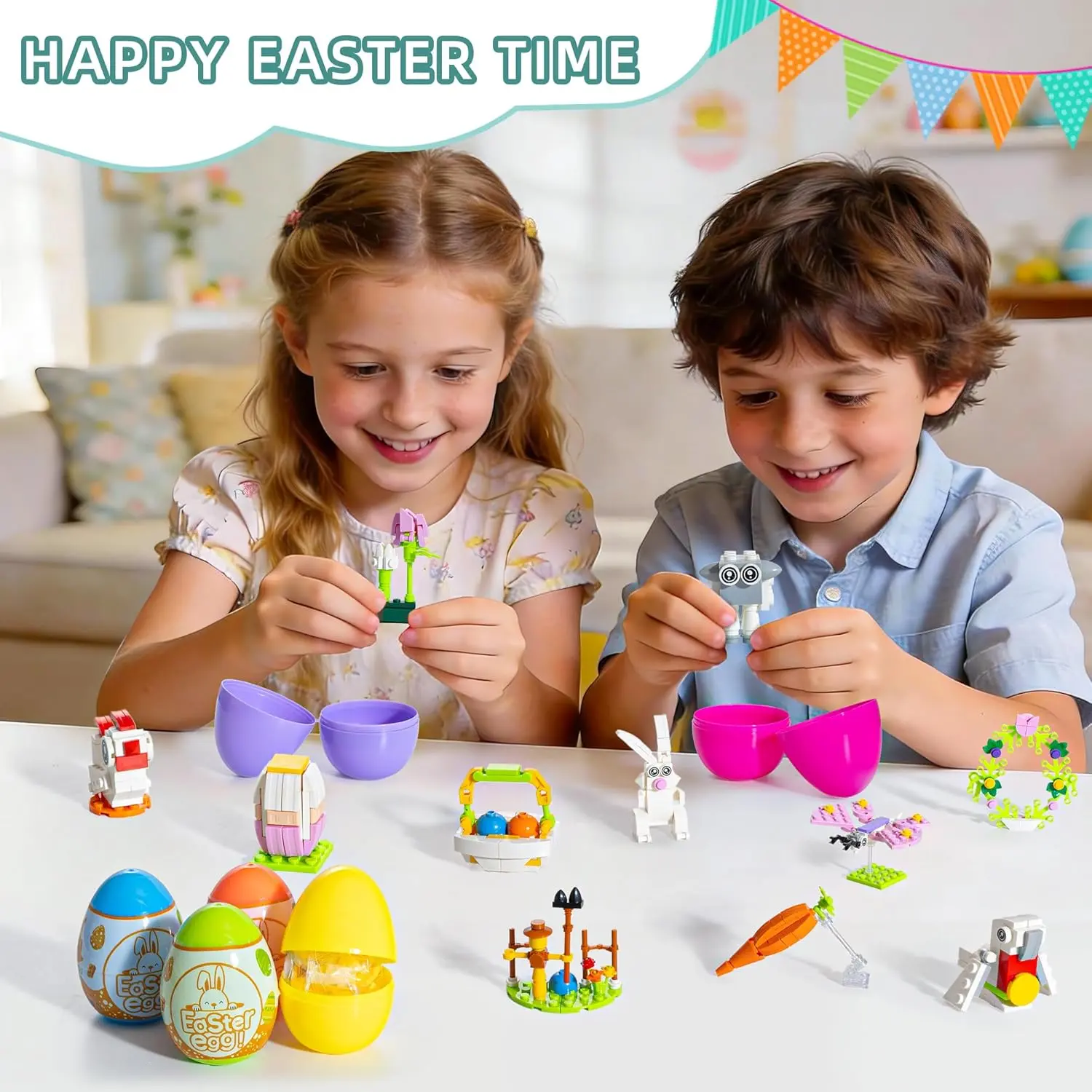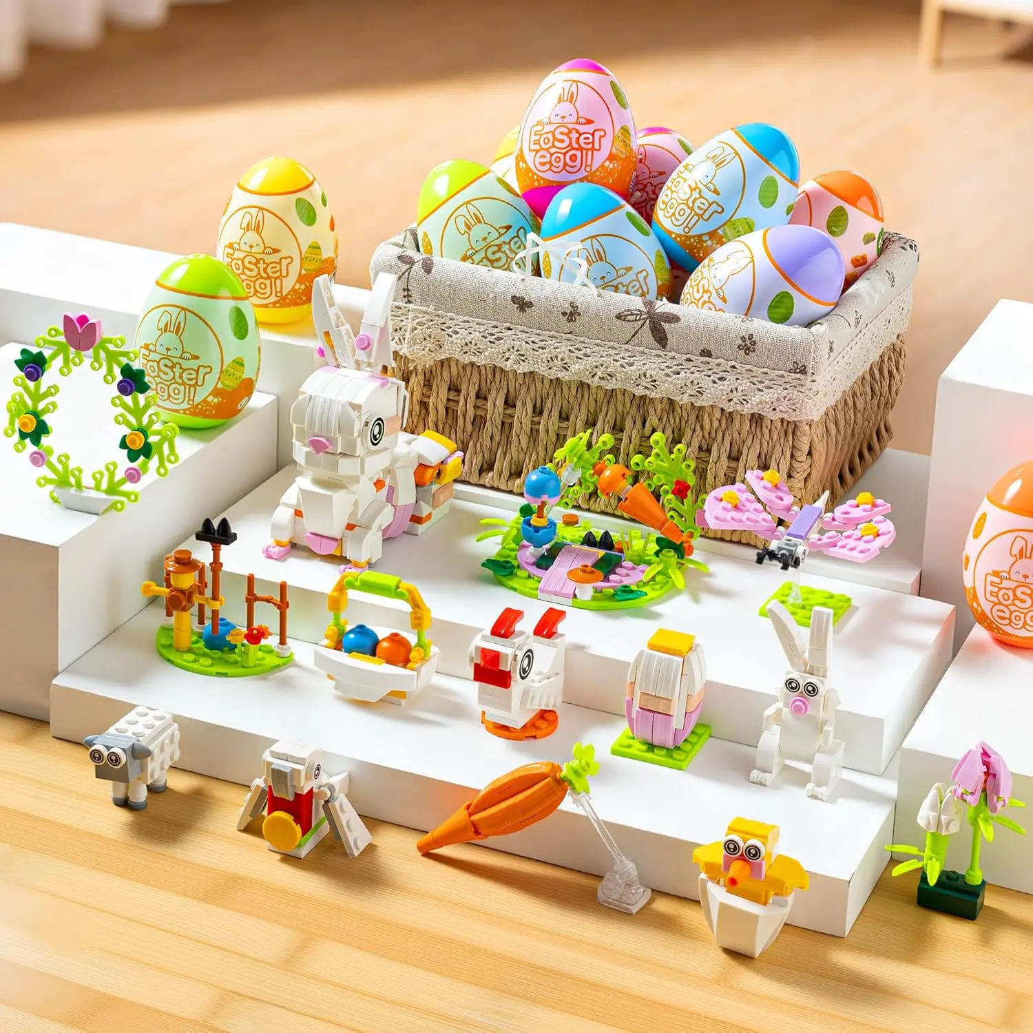 Prefilled Easter Eggs with 12 Packs Bunny Building Blocks Sets – 12 in 2 Easter Basket Stuffers Building Toys, Includes Rabbit, Butterfly, Carrot, Flower, Party Favors Gifts for Kids Boys Girls 6+