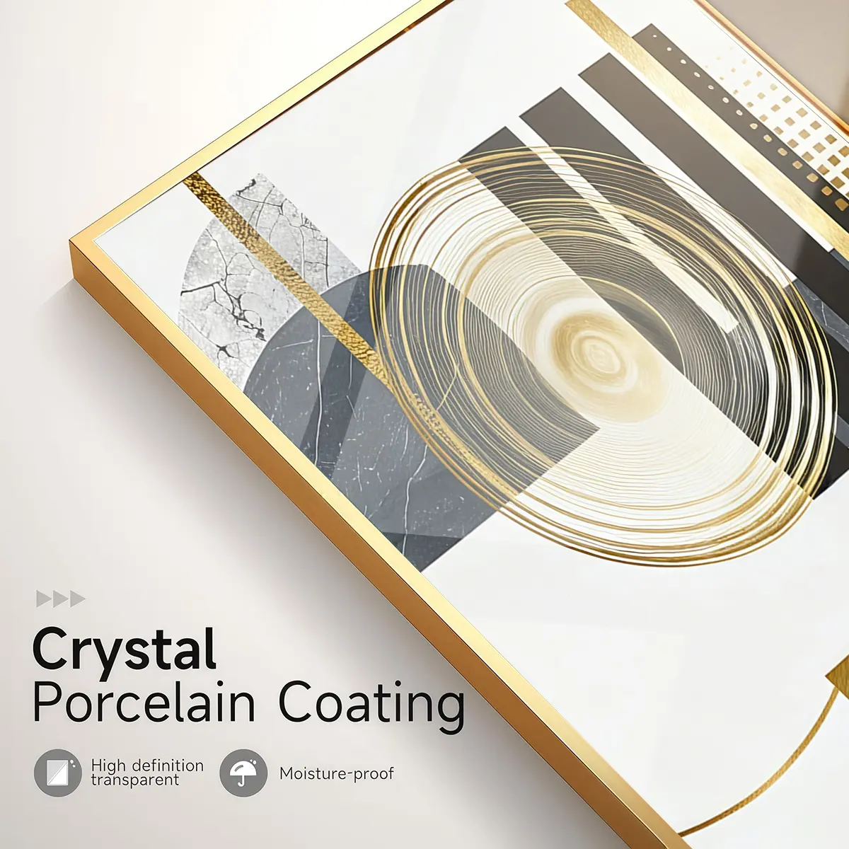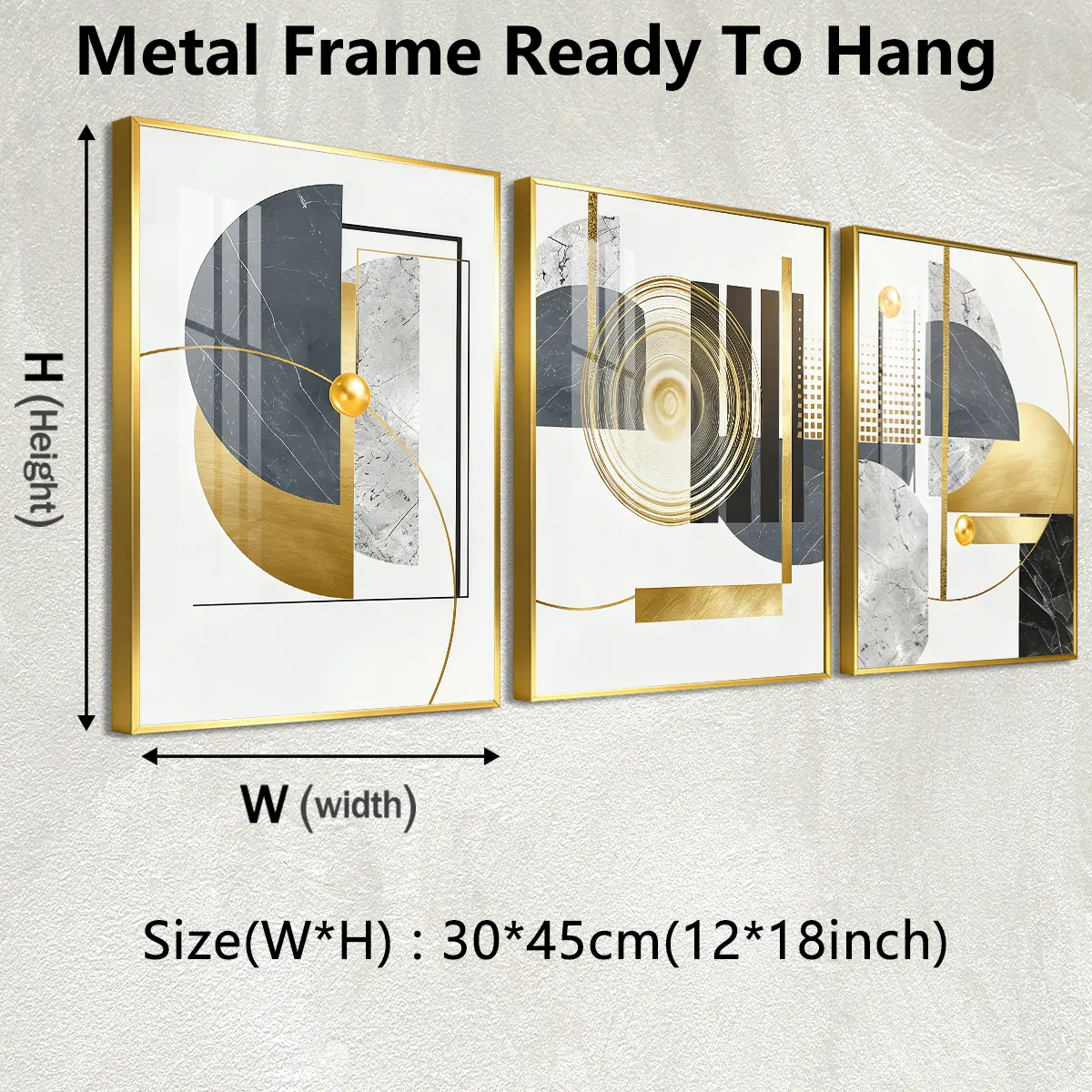 3 Counts Aluminum Alloy Framed Painting, Geometric Gold And Grey Abstract Art, Home Decoration For Living Room, Bedroom, Office, Restaurant, Hallway Wall Decor, Odorless Print Artwork, Luxury Perfect Gift For Friends And Family