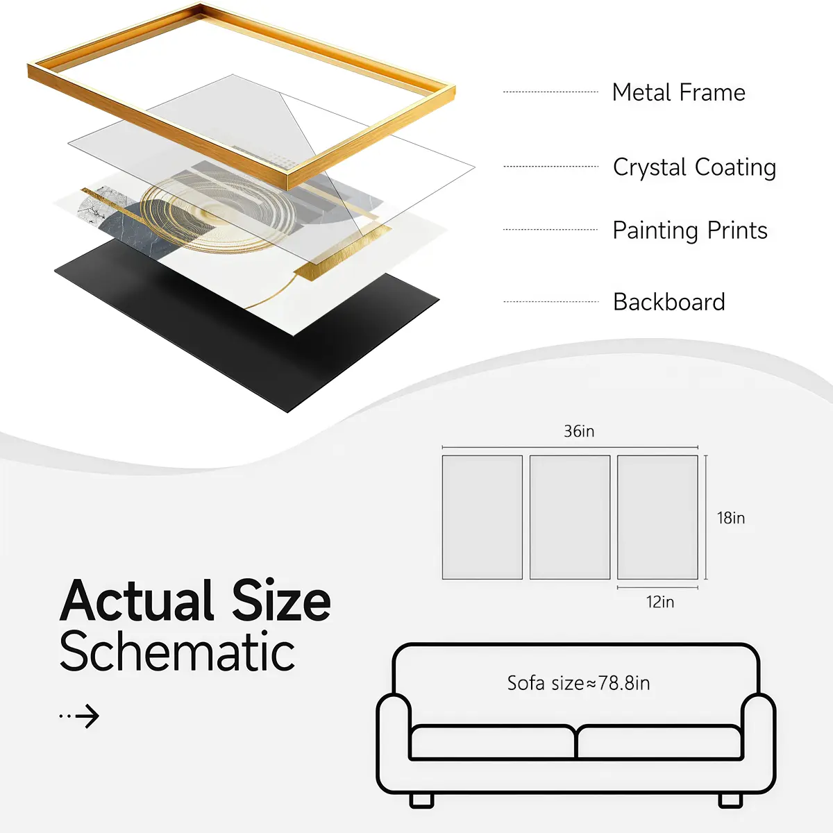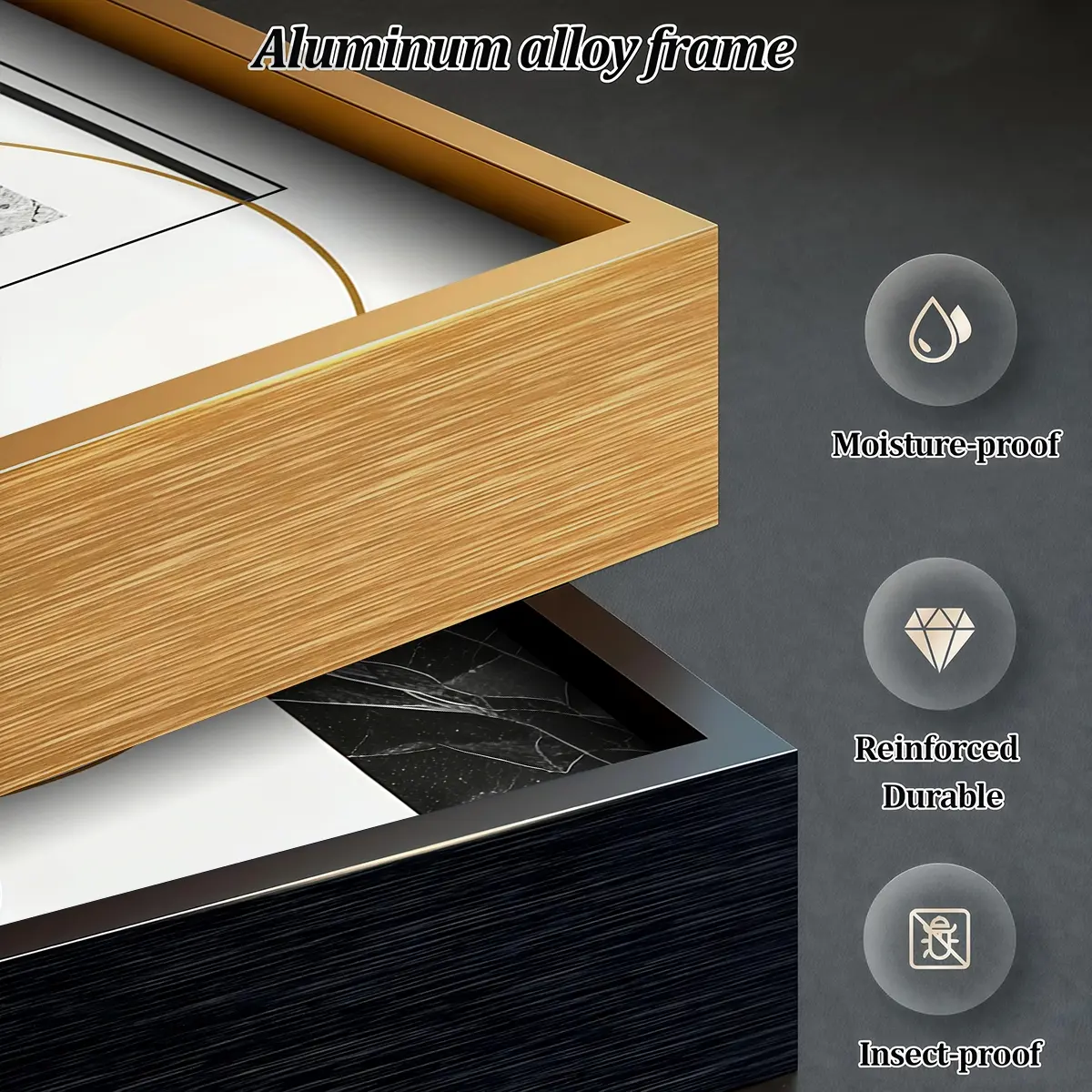 3 Counts Aluminum Alloy Framed Painting, Abstract Geometric Gold And Black Art Pictures, Home Decoration For Living Room, Bedroom, Office, Restaurant, Hallway Wall Decor, Odorless Print Artwork, Luxury Perfect Gift For Friends And Family