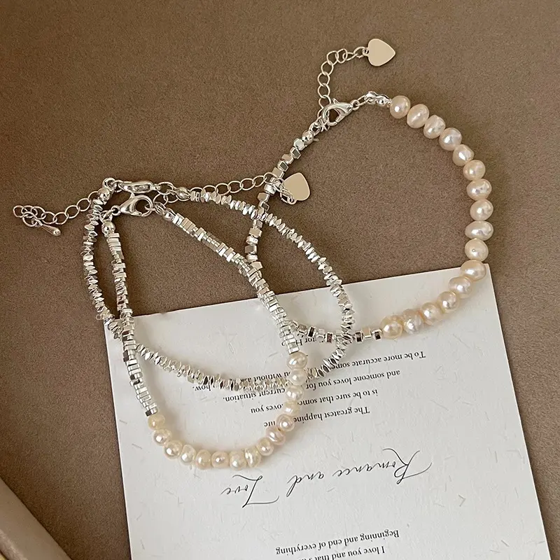 🌟 Silver Chip Baroque Pearl Bracelet for Women 🌟