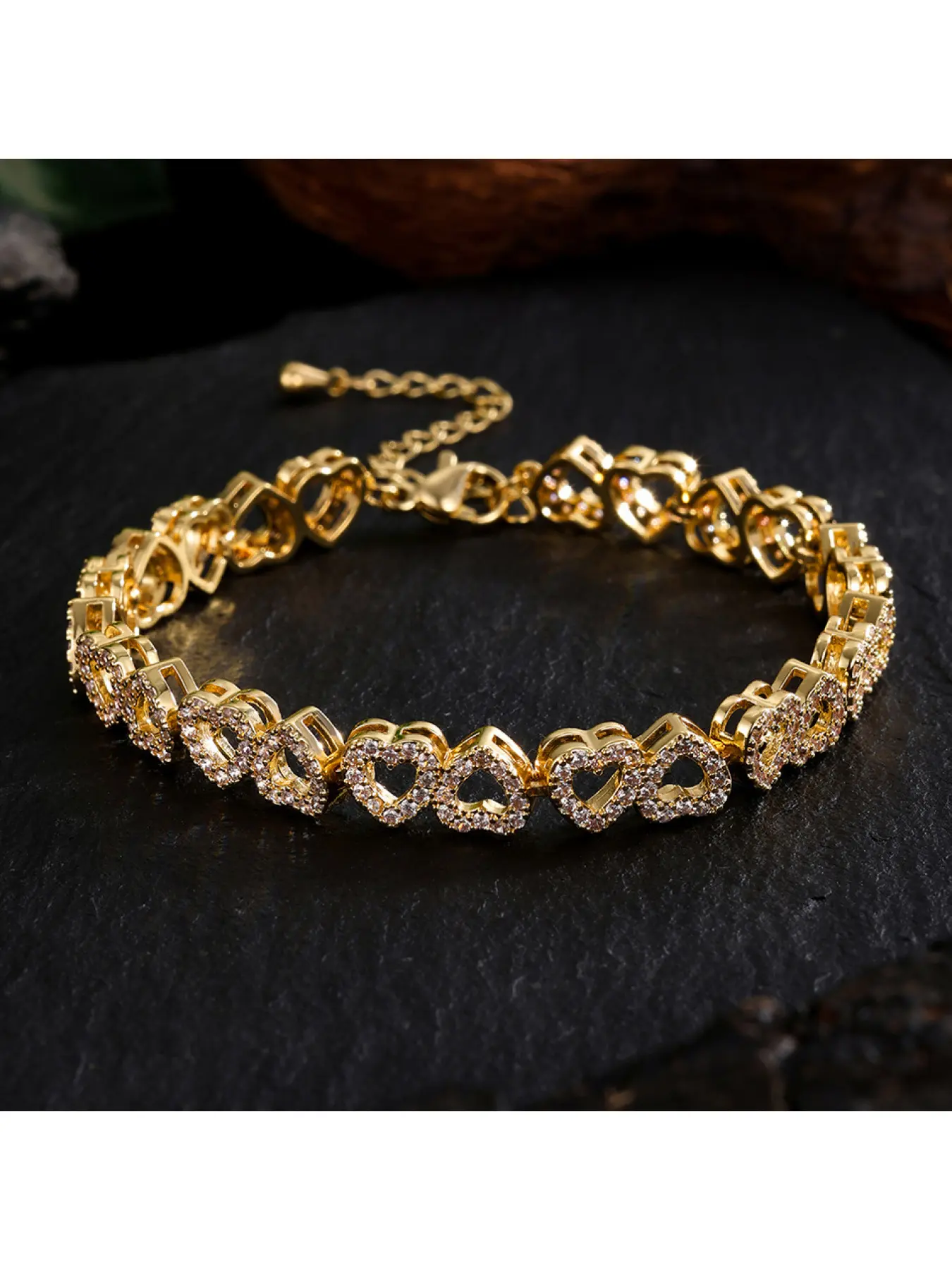 PAVOI 14K Gold Plated Heart Tennis Bracelets for Women - Cubic Zirconia Valentines Love Heart Statement Bride Gold Bracelet - Simulated Diamonds Bezel Set Tennis Bracelet