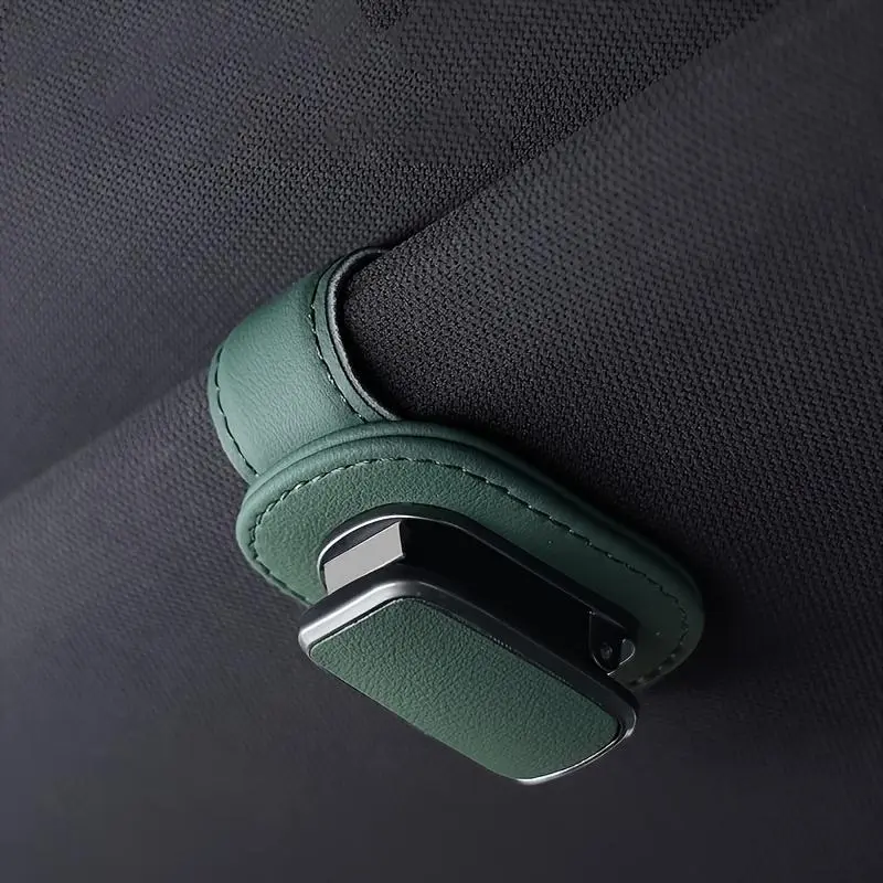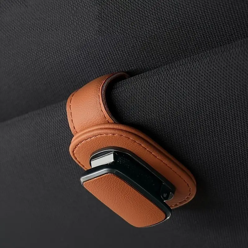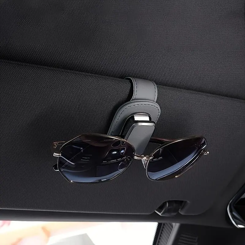 This is an upgraded car sun visor sunglasses holder, featuring a premium leather + metal design. Secured by a strong magnetic closure, it conveniently stores sunglasses, prescription glasses, and can also clip cards and receipts. Available in multiple colors, it's a practical interior accessory that elevates your car's tidiness and style.