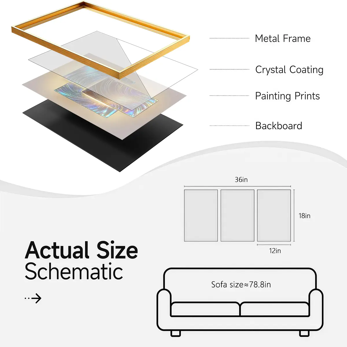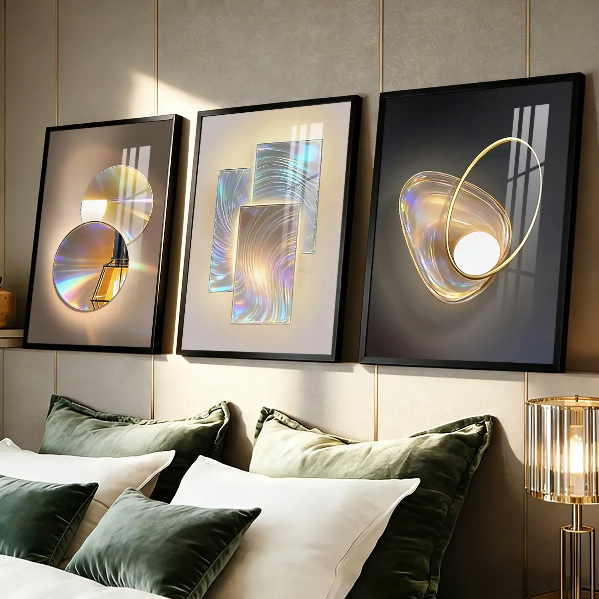 3 Counts Aluminum Alloy Framed Painting, Gradient Iridescent Abstract Light Art Pictures, Home Decoration For Living Room, Bedroom, Office, Restaurant, Hallway Wall Decor, Odorless Print Artwork, Luxury Perfect Gift For Friends And Family
