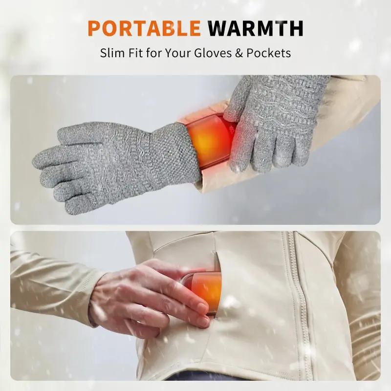 [Comfortable Grip & Palm-Sized]Ergonomically designed to fit comfortably in your hand, these electric hand warmers are palm-sized, making them easy to hold and carry with you wherever you go.