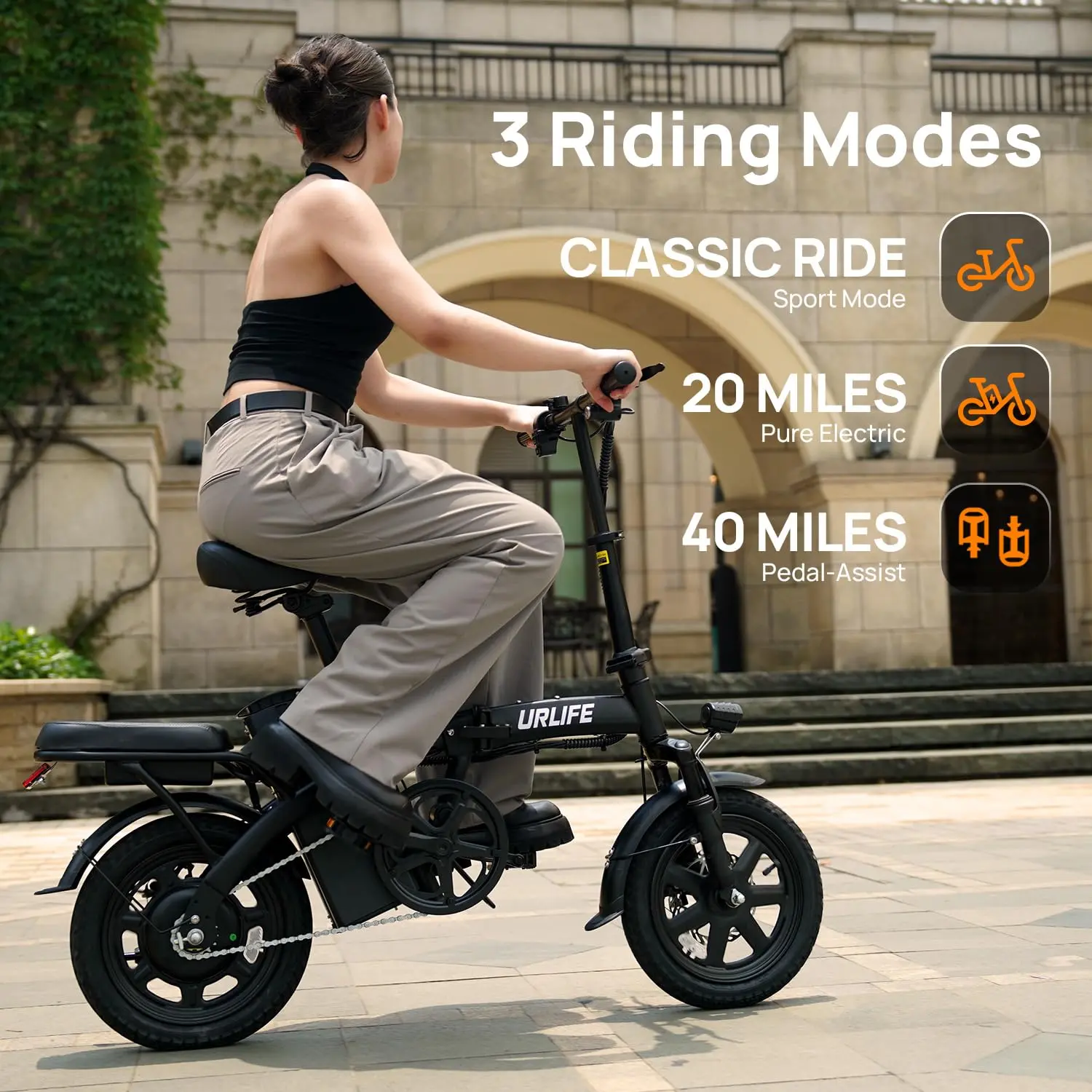 ·【Long-Lasting & Detachable E-Bike】The e-bike offers an industry-leading 40-mile max range per charge, plus anti-theft locking and 3-5H fast charging—ride farther, worry less.