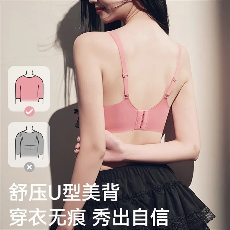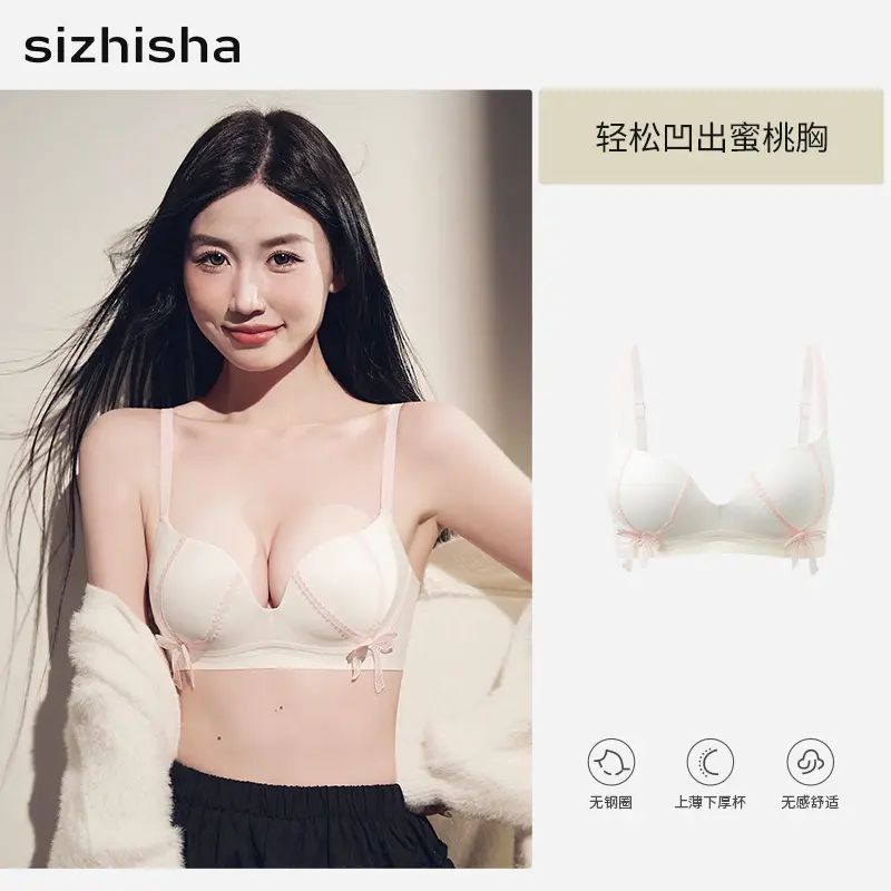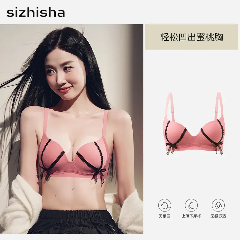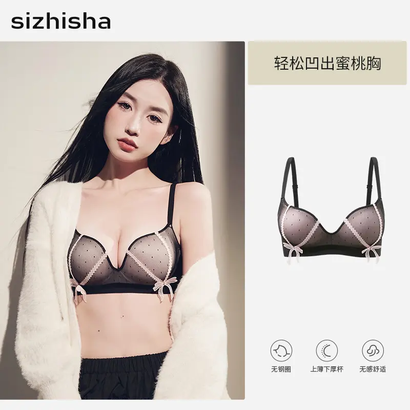 French-style bow lace bra for women with small busts, enhancing and enlarging the bust without underwire, with side breast support and lift, sweet and sexy bra