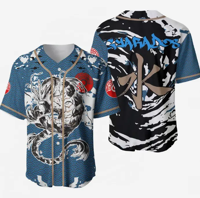 Gyarados Magikarp Baseball Jersey Shirt - Black & White Anime Fan Apparel for Adults - Gaming Gift