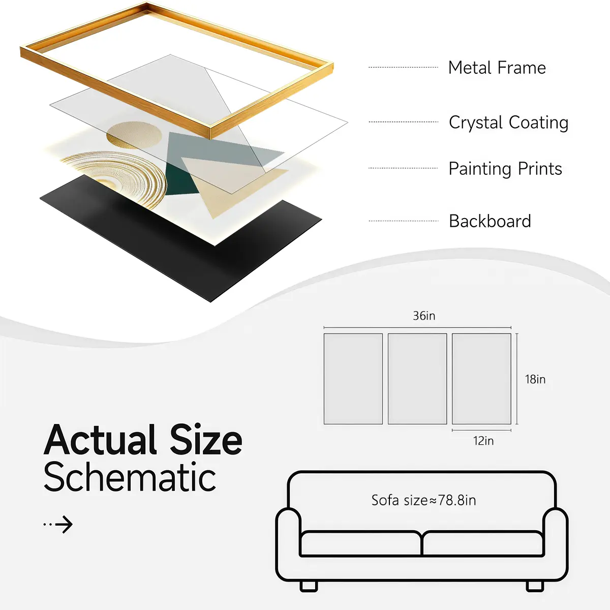 3 Counts Aluminum Alloy Framed Painting, Abstract Geometric Gold And Black Art Pictures, Home Decoration For Living Room, Bedroom, Office, Restaurant, Hallway Wall Decor, Odorless Print Artwork, Luxury Perfect Gift For Friends And Family