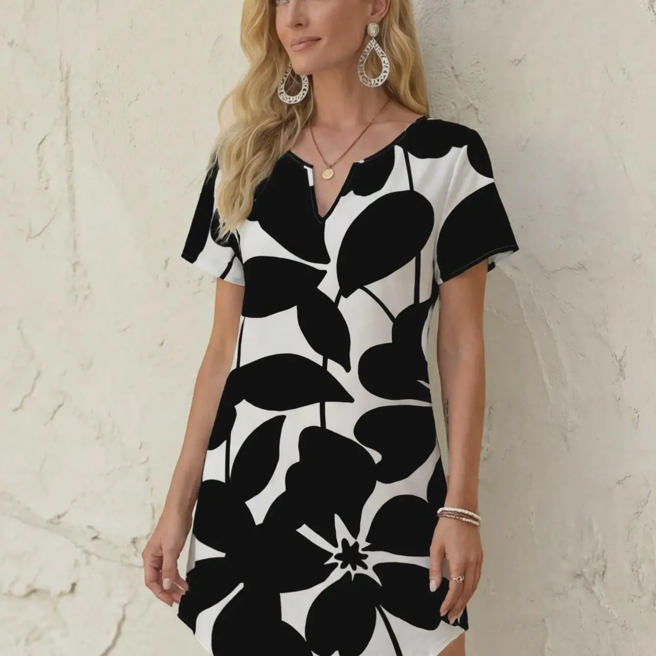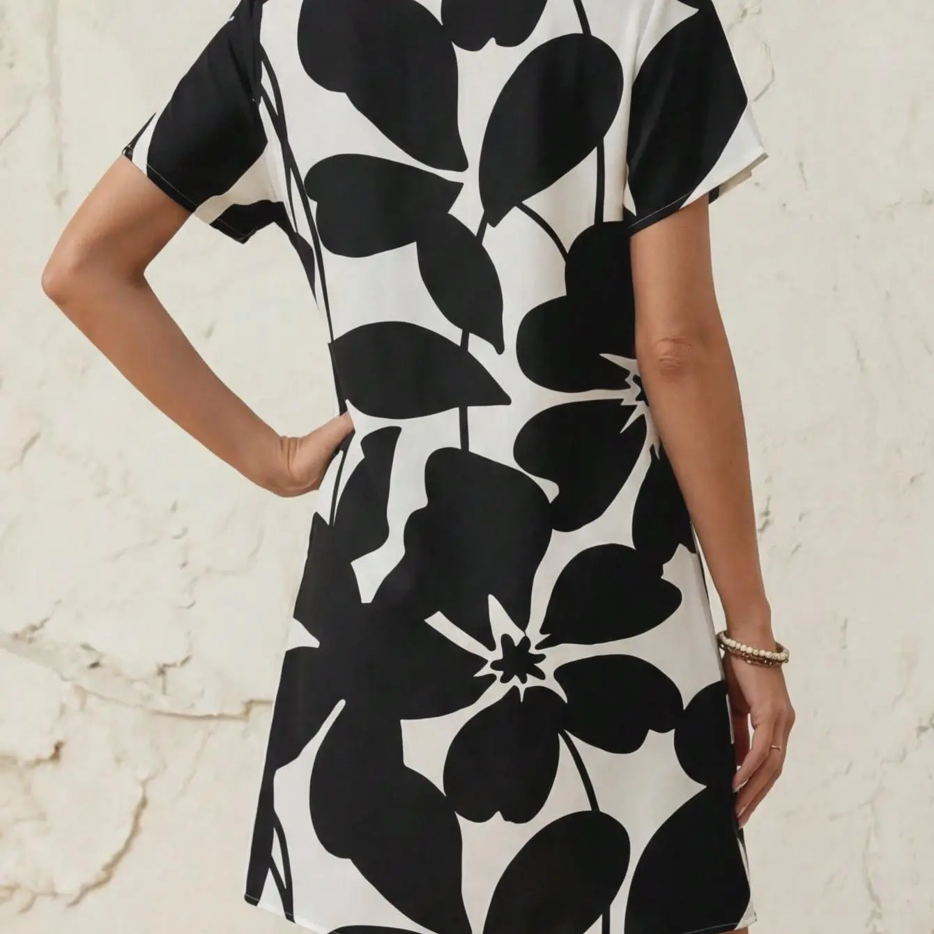 Casual V-Neck Short Sleeve Floral Print A-Line Mini Dress For Women