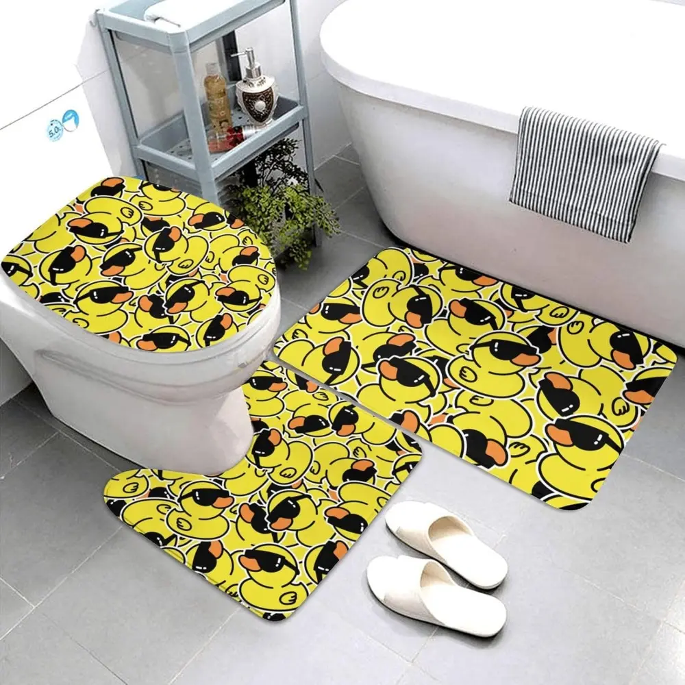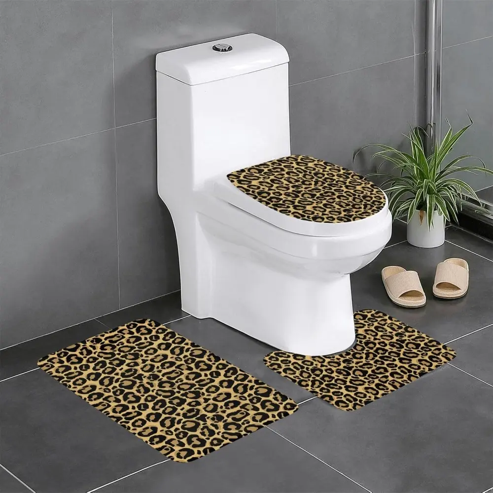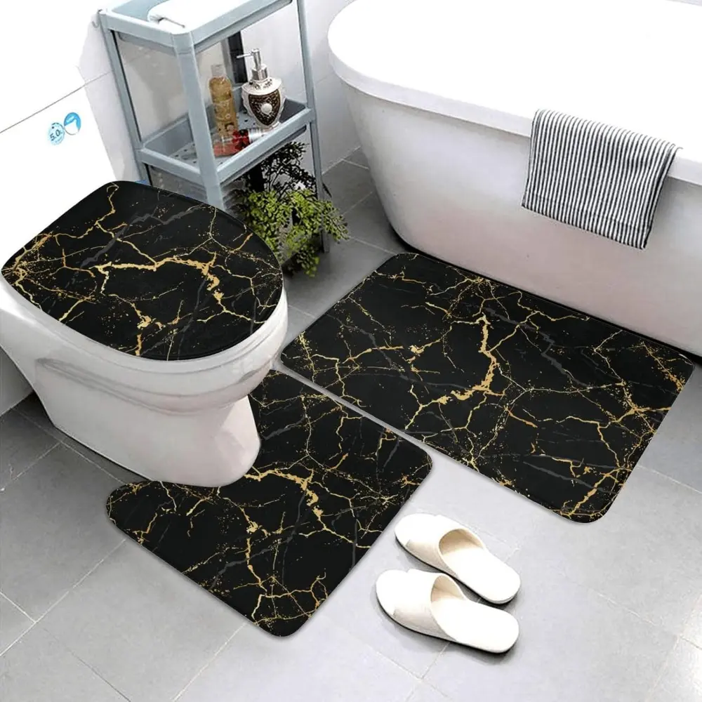 Black White Marble Print 3 Piece Bathroom Rugs Set, Bath Mat + Contour Mat + Toilet Seat Cover, Non-Slip Soft Microfiber Bathmat for Tub Shower Room Decor, Machine Washable
