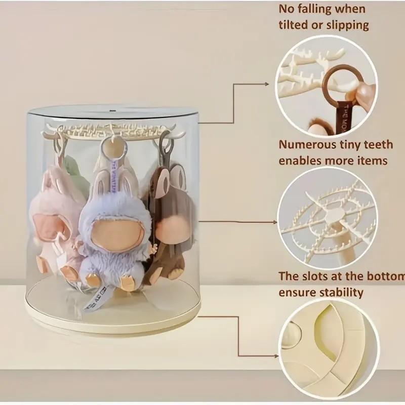 ·【Size and Material】 PLEASE KINDLY COMPARE SIZE CAREFULLY BEFORE PLACING YOUR ORDER. This diplay case is sized at 10.1 inches tall, 9.3 inches wide. It is suggested to display up to FOUR 6.7 in-tall pendants to leave some space to rotate! It can storage more if the pendant is smaller size. This display box is made of high-quality ABS material, with reinforced thick panel, more sturdy and durable, It won't fall when tilted and the rod won't slip when rotated, the slots at the bottom ensure stability