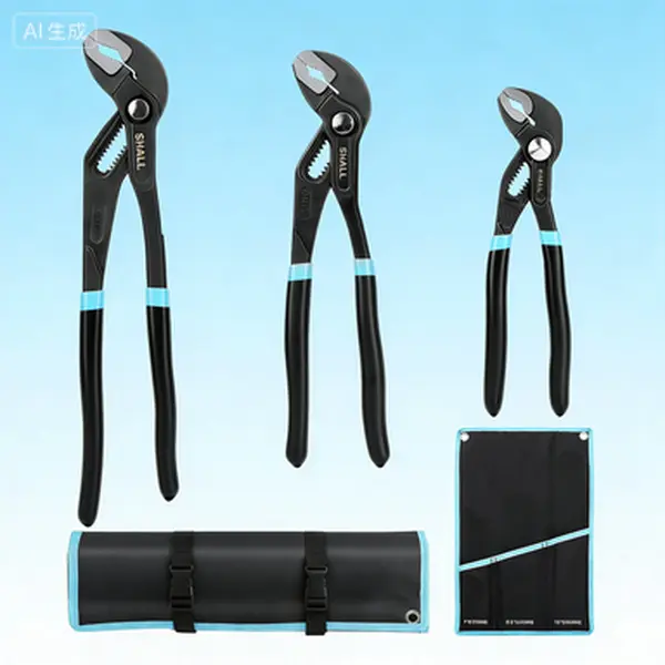 3-Piece Groove Joint Pliers Set with Tool Roll Bag, Includes 12-Inch, 9.5-Inch, and 7-Inch Fast Adjustable Push-Lock Water Pump Pliers Made from Durable Cr-V Steel for Home Repair, Plumbing, and General Maintenance Tasks