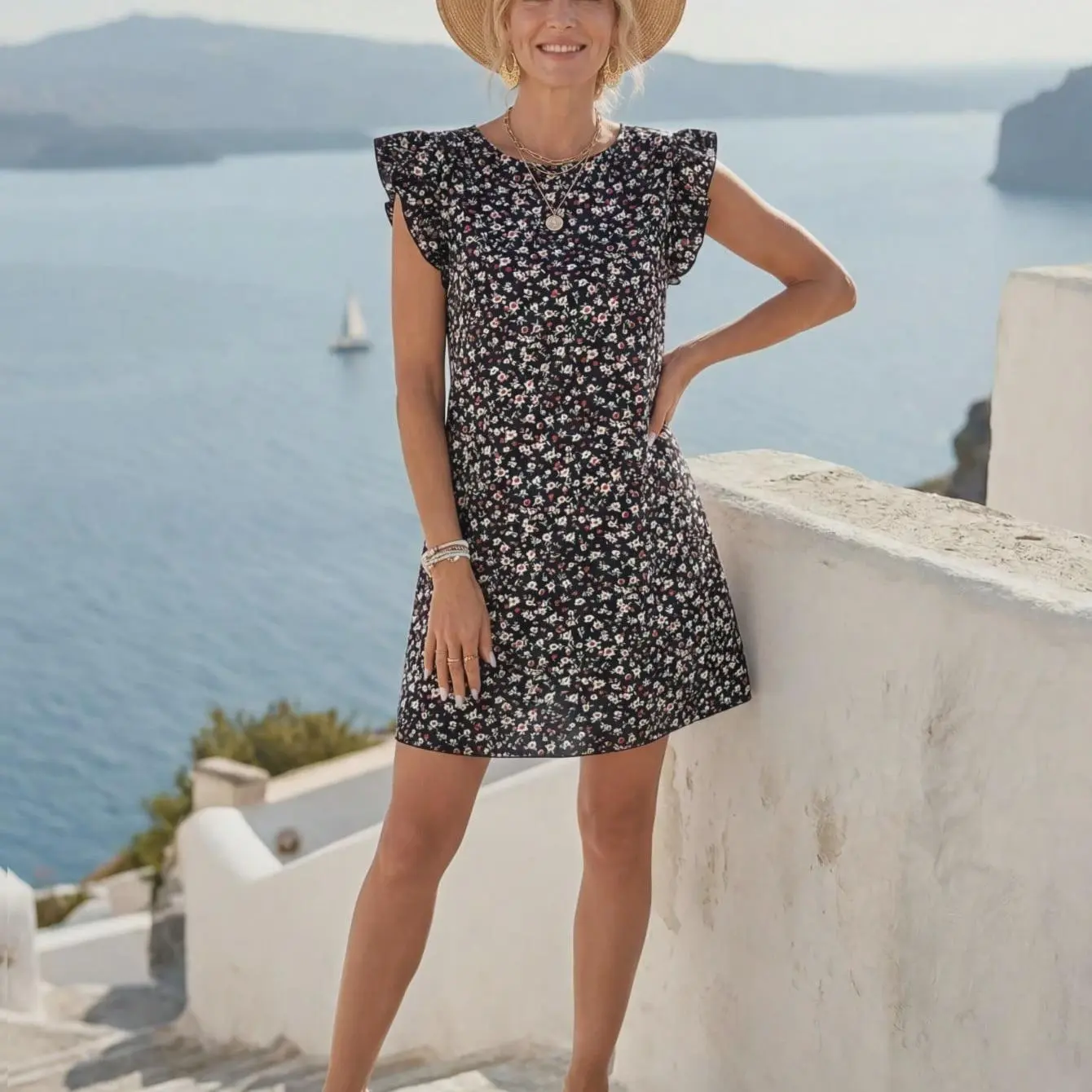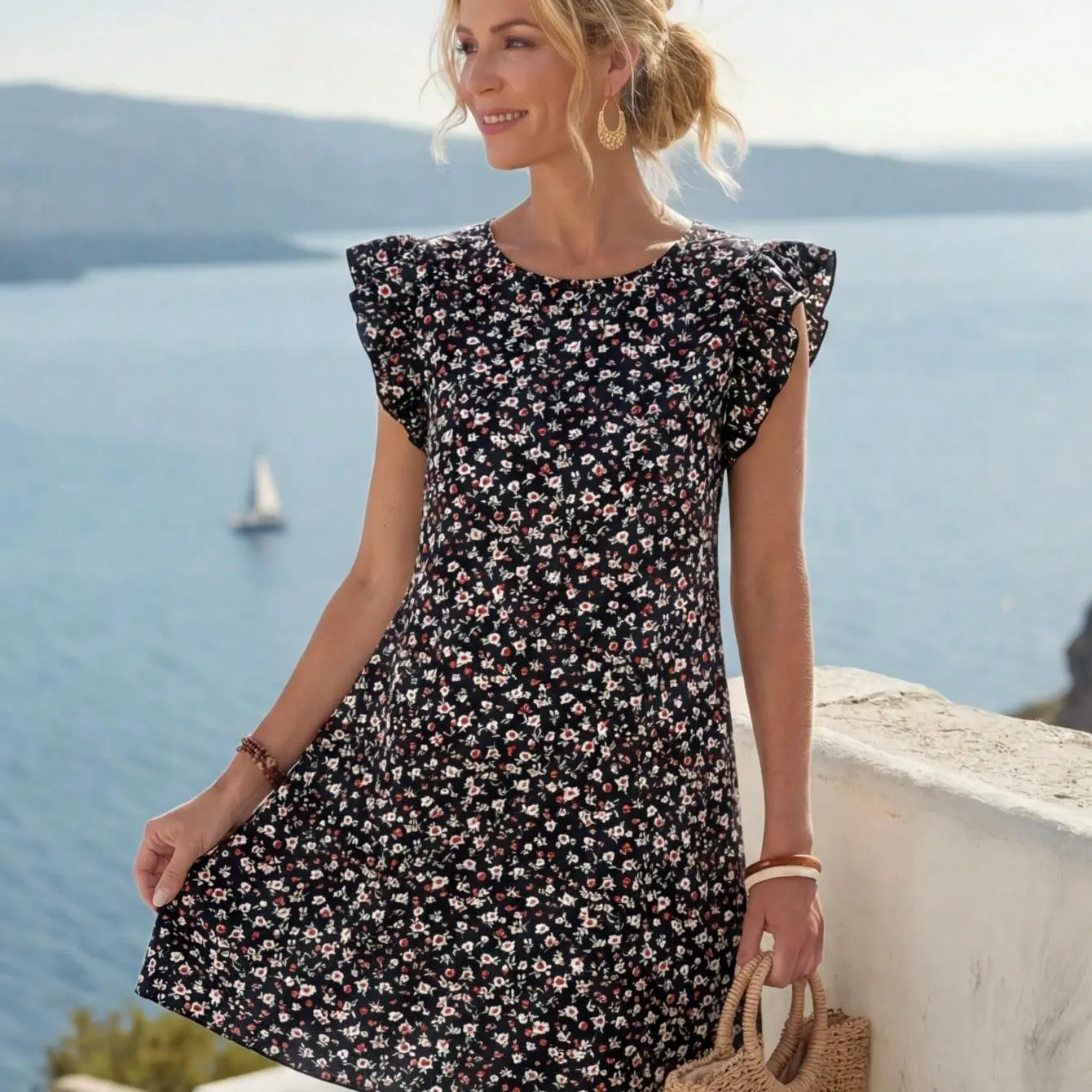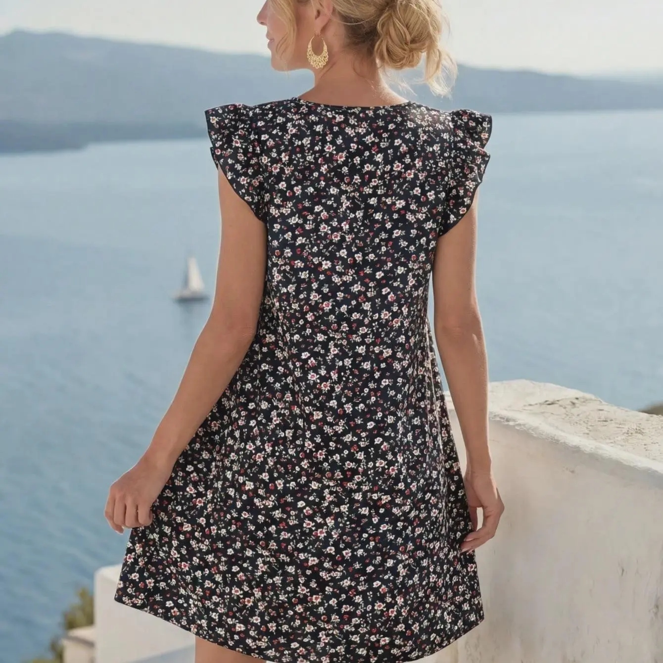 Ditsy Floral Print Ruffle Sleeve A-Line Mini Dress For Women Casual Summer