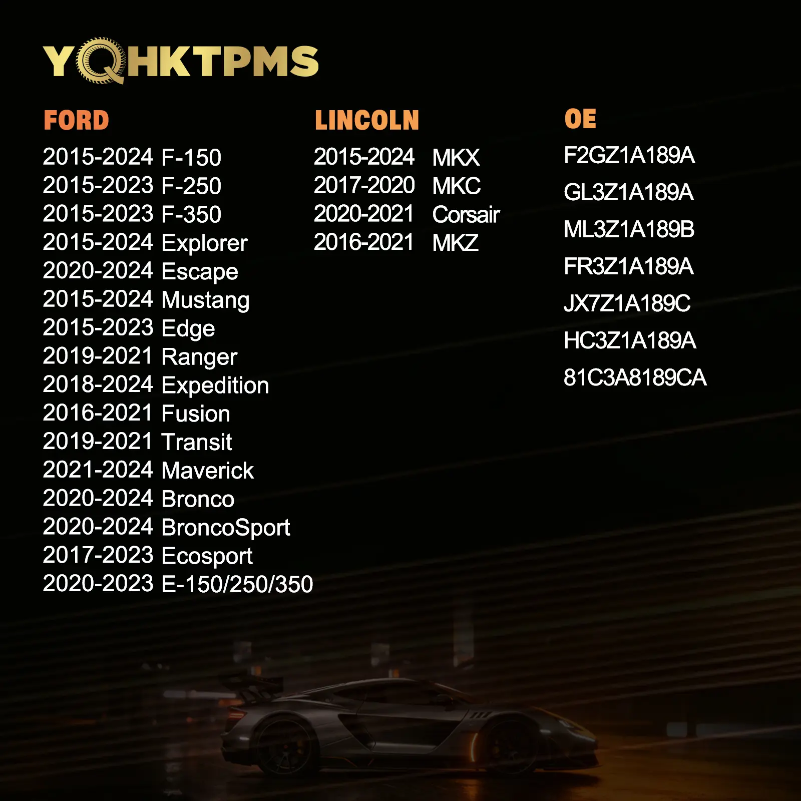 ·【Compatible With Other Vehicle Models】 :-FORD Escape(20-24).Mustang(15-24).Expedition(18-24).Fusion (16-21).Transit150/250/350(19-21).Ecosport(17-23).E-350/450(20-23).Bronco(20-24).BroncoSport(20-24).Ranger(19-21). :-Lincoln MKX(15-24).MKC(17-20).Corsair(20-21).MKZ(16-21). 【OE numbers】 F2GZ1A189A.GL3Z1A189A.ML3Z1A189B.FR3Z1A189A.JX7Z1A189C.HC3Z1A189A.81C3A8189CA etc.