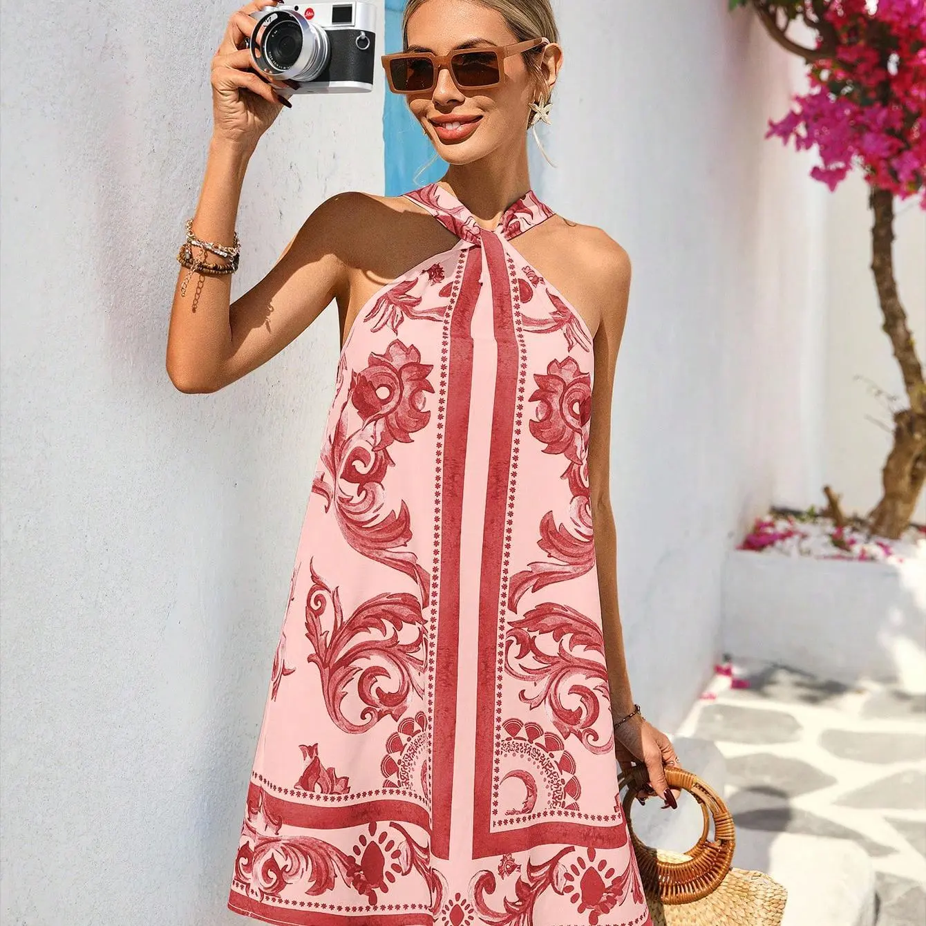 Haltered Floral Print Beach Dress For Women Summer Mini Dress