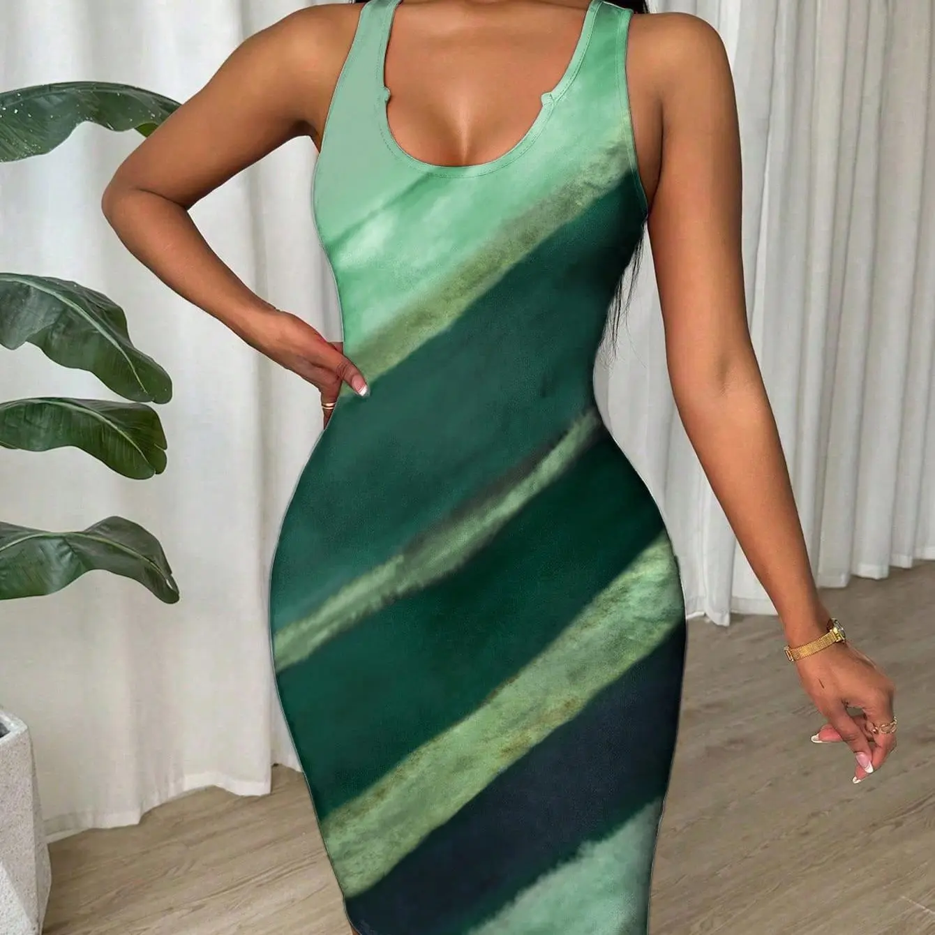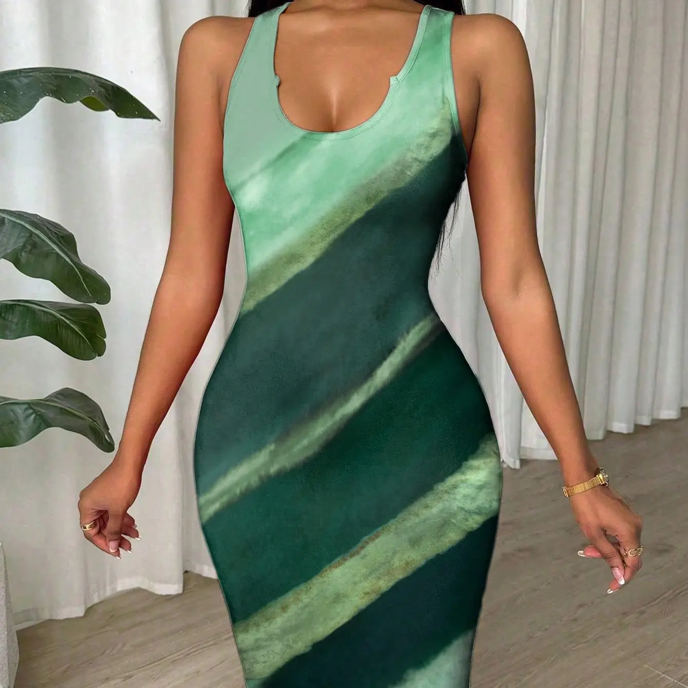 Tie Dye Slim Fit Sleeveless Bodycon Dress For Women