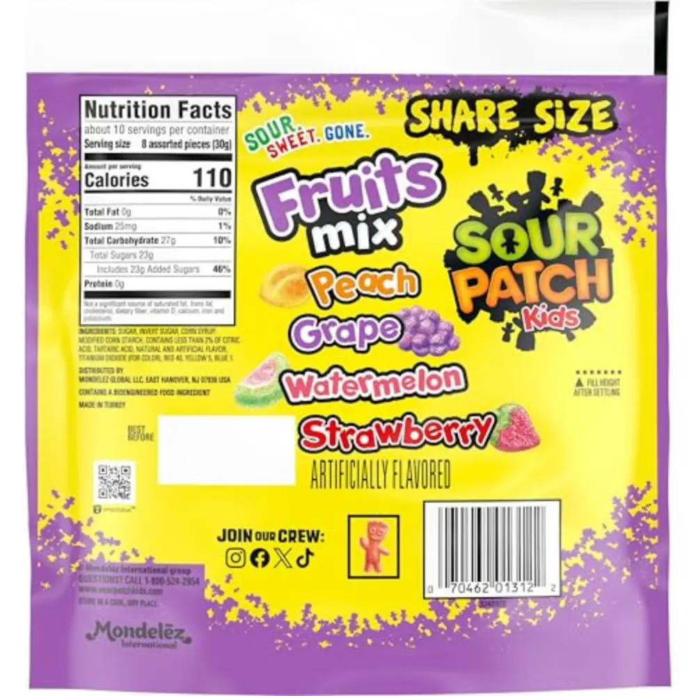 Sour Patch Kids candy, sour chewy candy, fruits mix, sweet and sour, soft chewy, fruity gummy, share size, TikTok viral, sour lovers, sharing, kids favorite, party bulk, movie night, classic sour, chewy fruit.