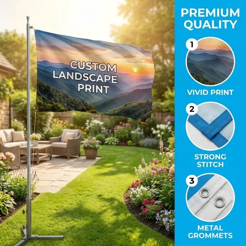 STOP SETTLING FOR FADED FLAGS! Upgrade to our Premium Custom Flag—engineered to withstand the elements while showcasing stunning, high-definition designs.