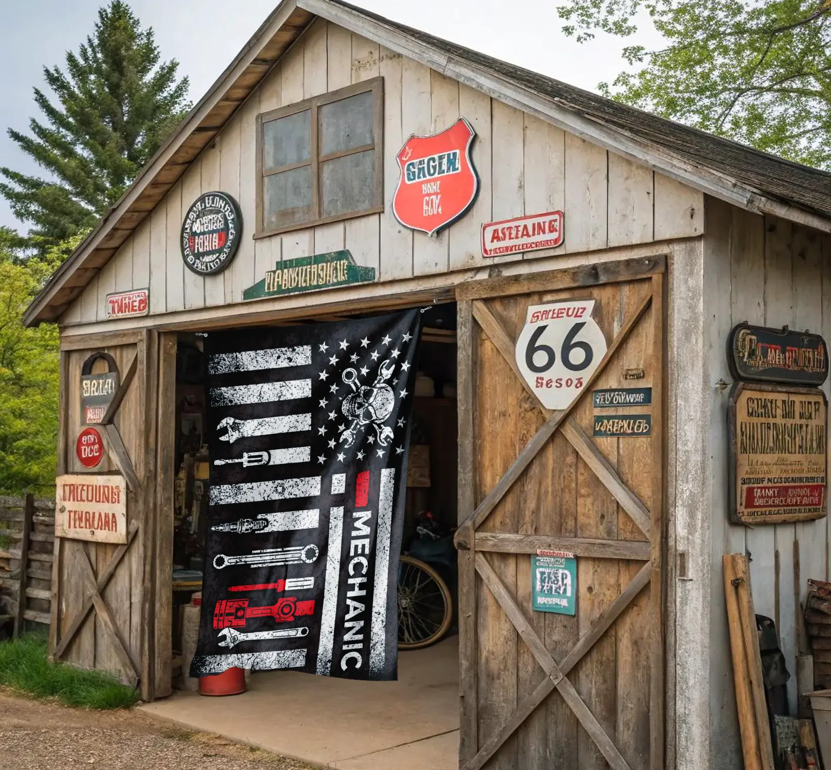 5. Black Patriotic American Flag Wrench Tools USA Design Outdoor Yard Garden Flag Double Sided Weather Resistant