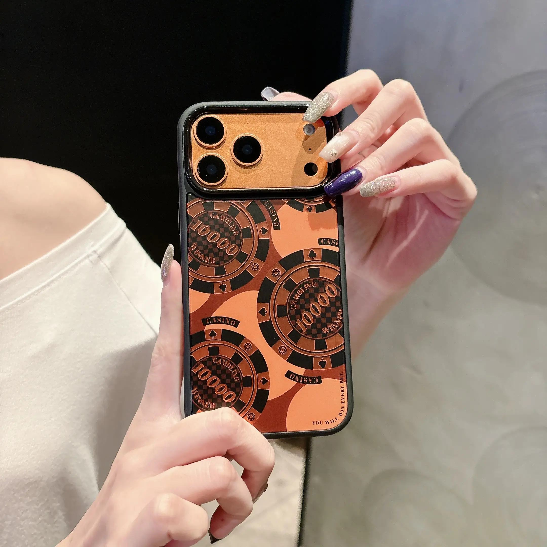 Our phone case features an exclusive high-end gilded printing technique — a decorative process that reflects different lights and gradients at every angle. This creates a stunning, luxurious look that makes your phone stand out like a piece of art.