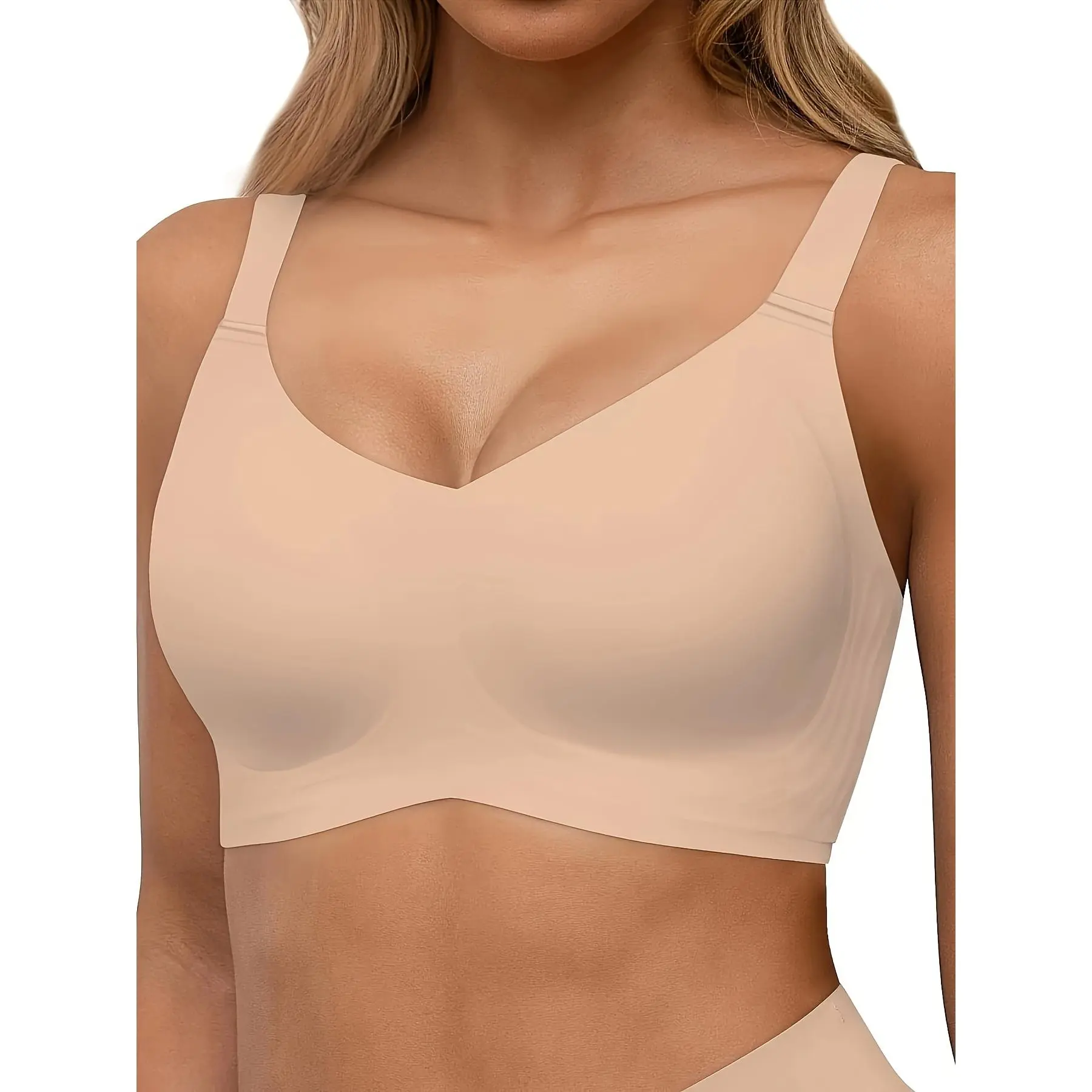 Seamless, Comfortable, And Supportive Women'S Bra with a Fixed Cup Design to Prevent Sagging And Side Bulge, Featuring No Underwire