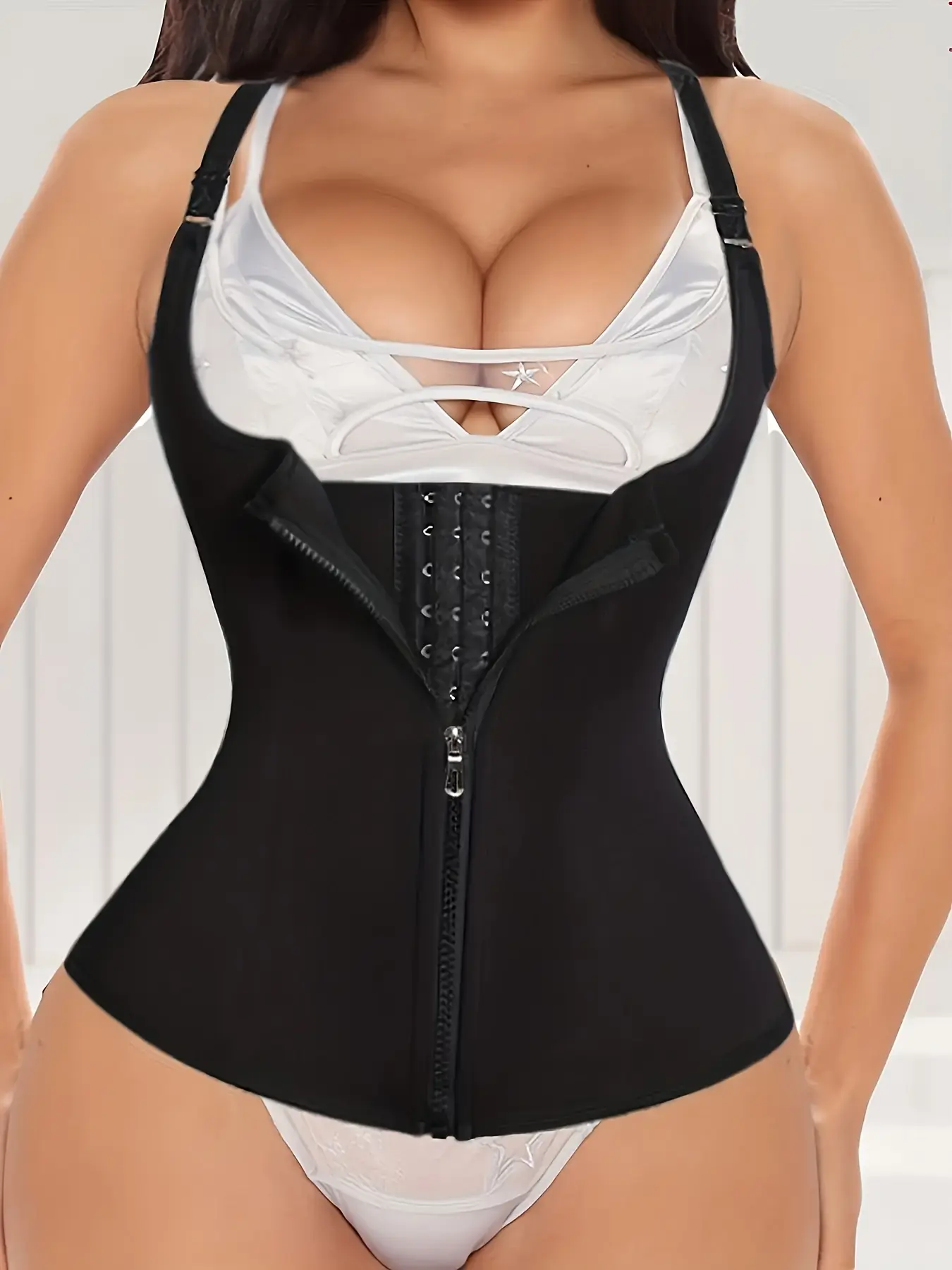 Zippered Bodysuit, Shaping Top, Tummy Control Corset, Sleeveless Top, Women's Sports Tummy Control Vest, 1pc