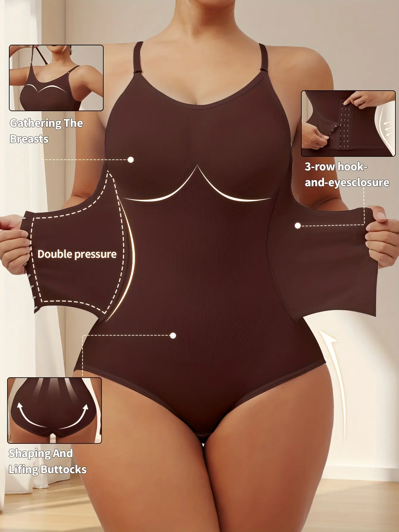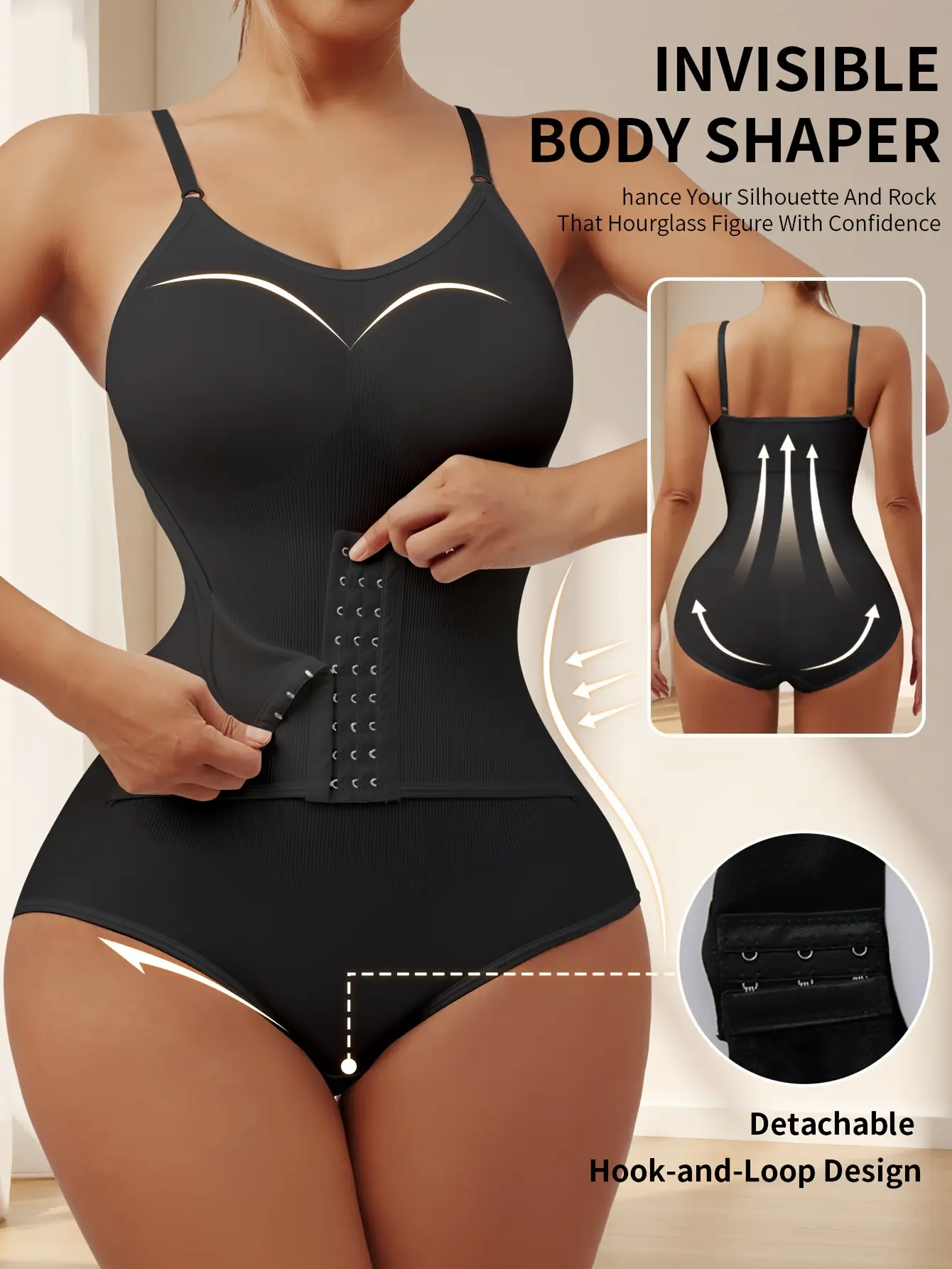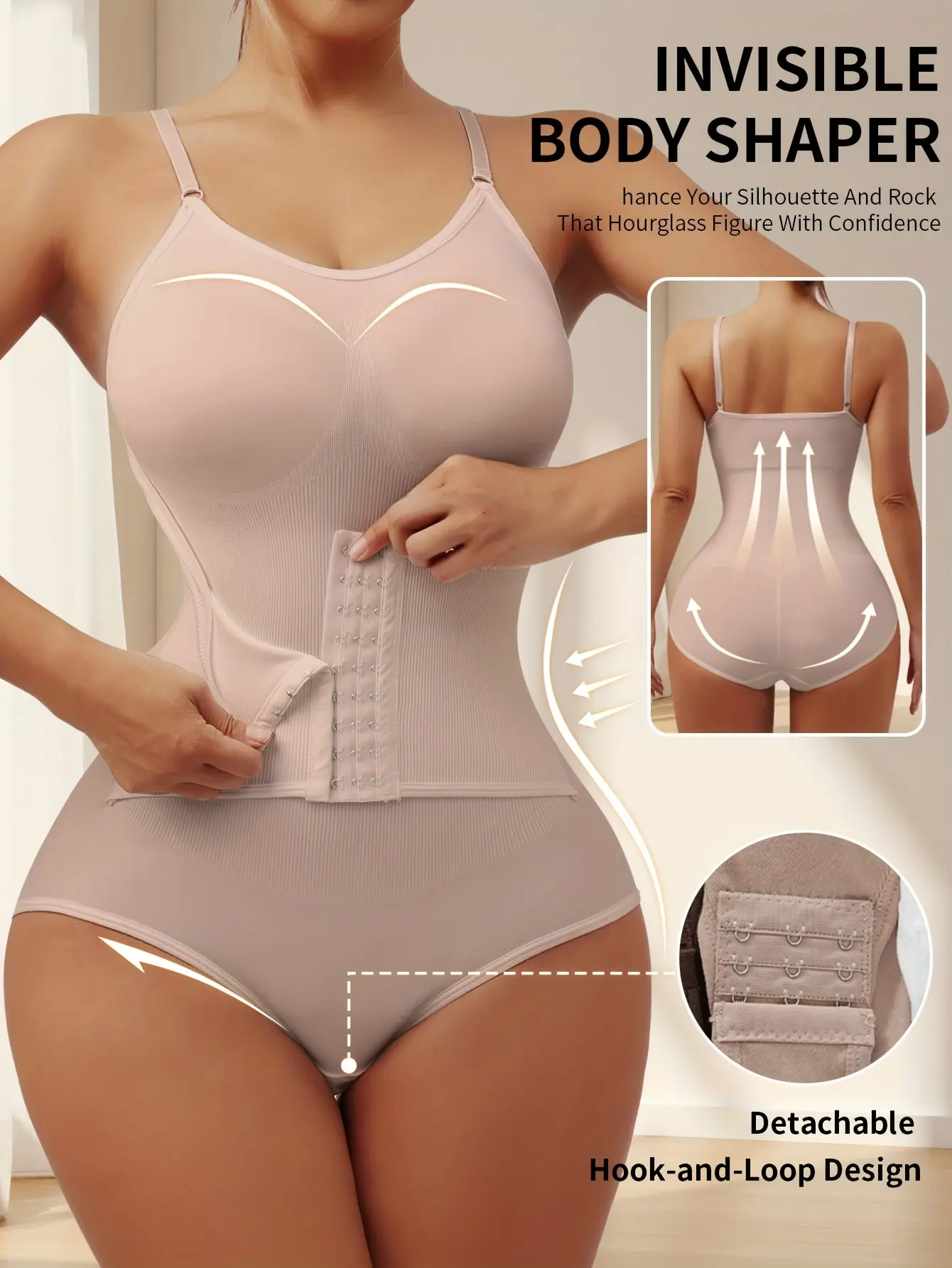 A Women'S Adjustable Strap Bodysuit with a Large U-Back Design, Featuring a Seamless Full-Body Shaping Effect, Tummy Control, And a Focus on Enhancing The Hips And Back