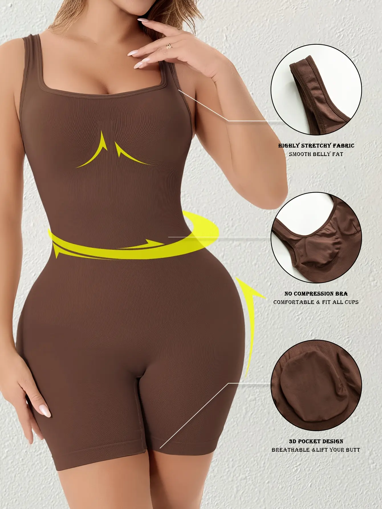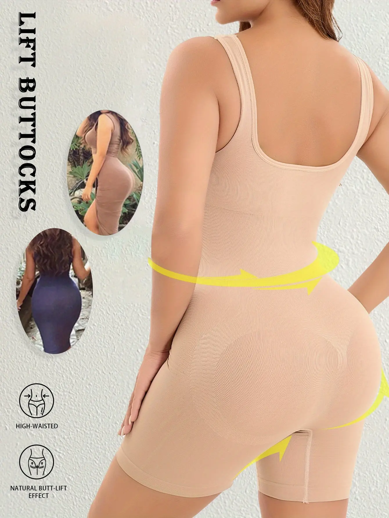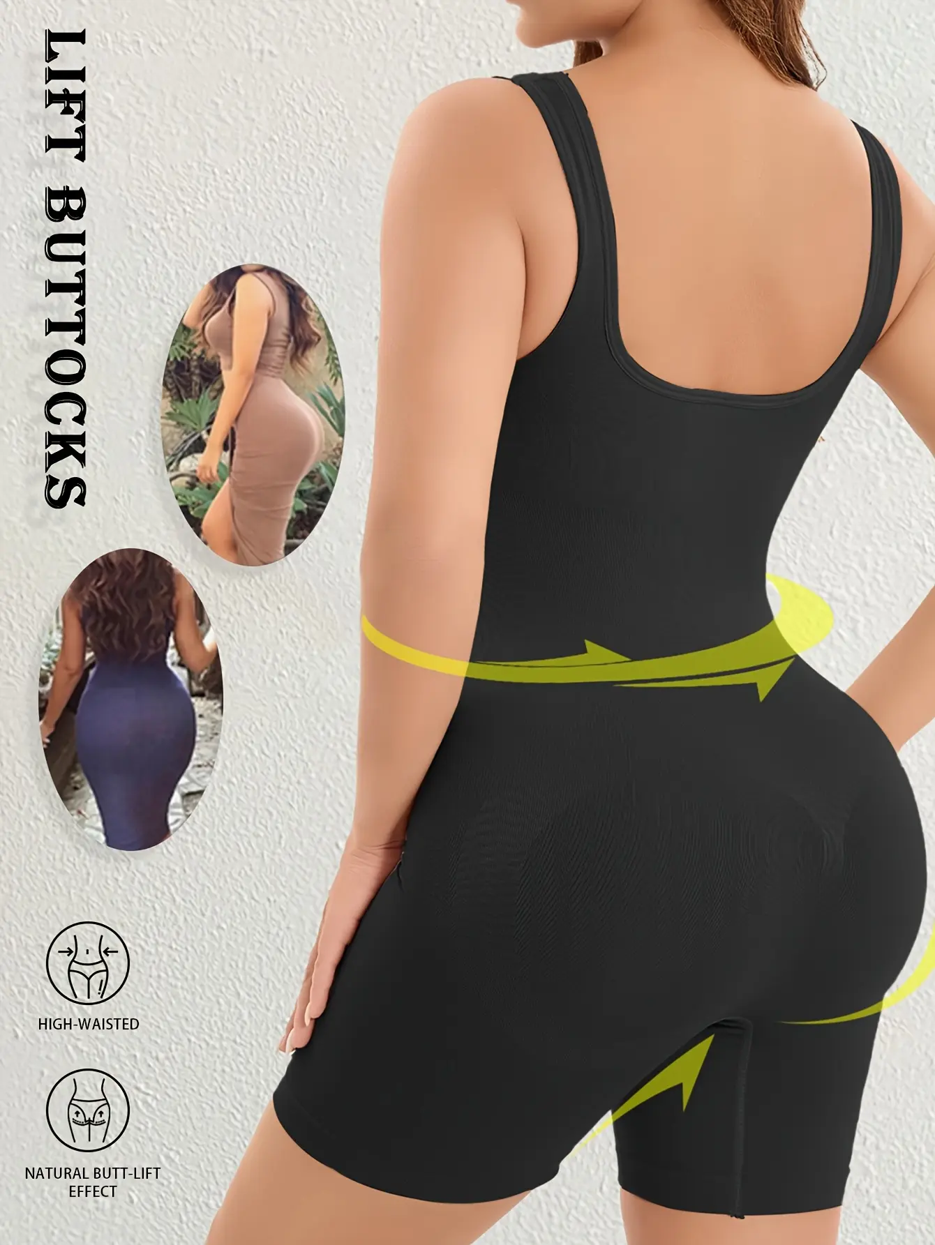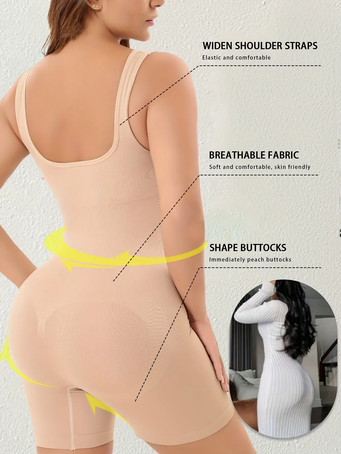 1pc Women'S Elastic Fabric Opaque Women'S Underwear And Shapewear Bodysuit, Seamless Shapewear Jumpsuit, High Elastic Tummy Control And Hip Lift Elegant Sleeveless Bodysuit Suitable for Fitness And Training