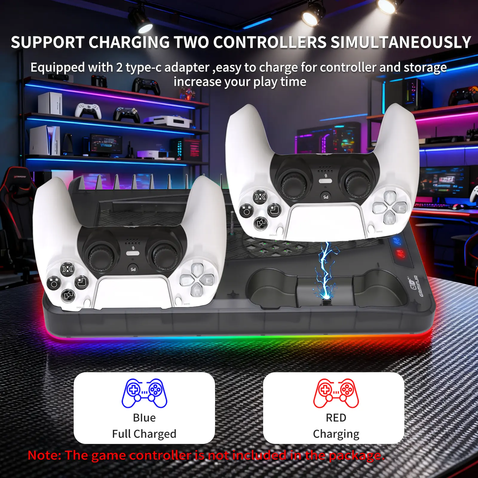 DIgit hub P58 Charging Base Cooling Bracket Compatible With PS5 Console, Vertical Stand Cooling Fan, Multi-functional Cooling & Charging Station for PS5 Slim Pro All Model Universal Gaming Pad Stomp Pad