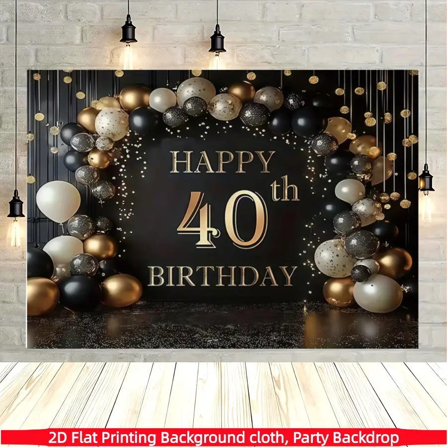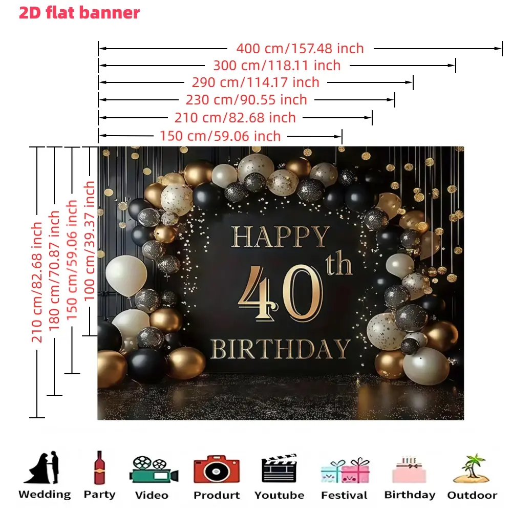 Gold 40th Birthday Banner, Polyester Material, Ideal for Home Decor, Office Parties, Photography Backdrop, Indoor Outdoor Use