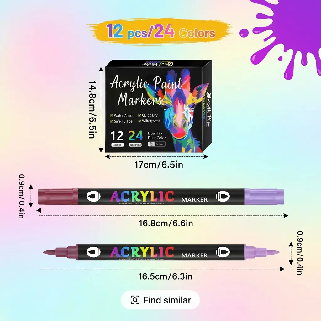 Discover the perfect tools for your creative projects! These dual-tip acrylic paint pens come in 24 vibrant colors, ideal for rock and glass painting. Each pen offers two tips for versatile application, enhancing your artistic expression. Perfect for DIY art enthusiasts, these pens make crafting fun and engaging.