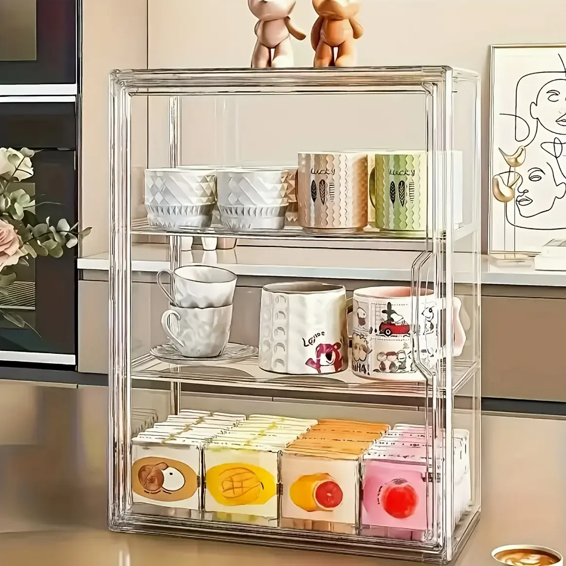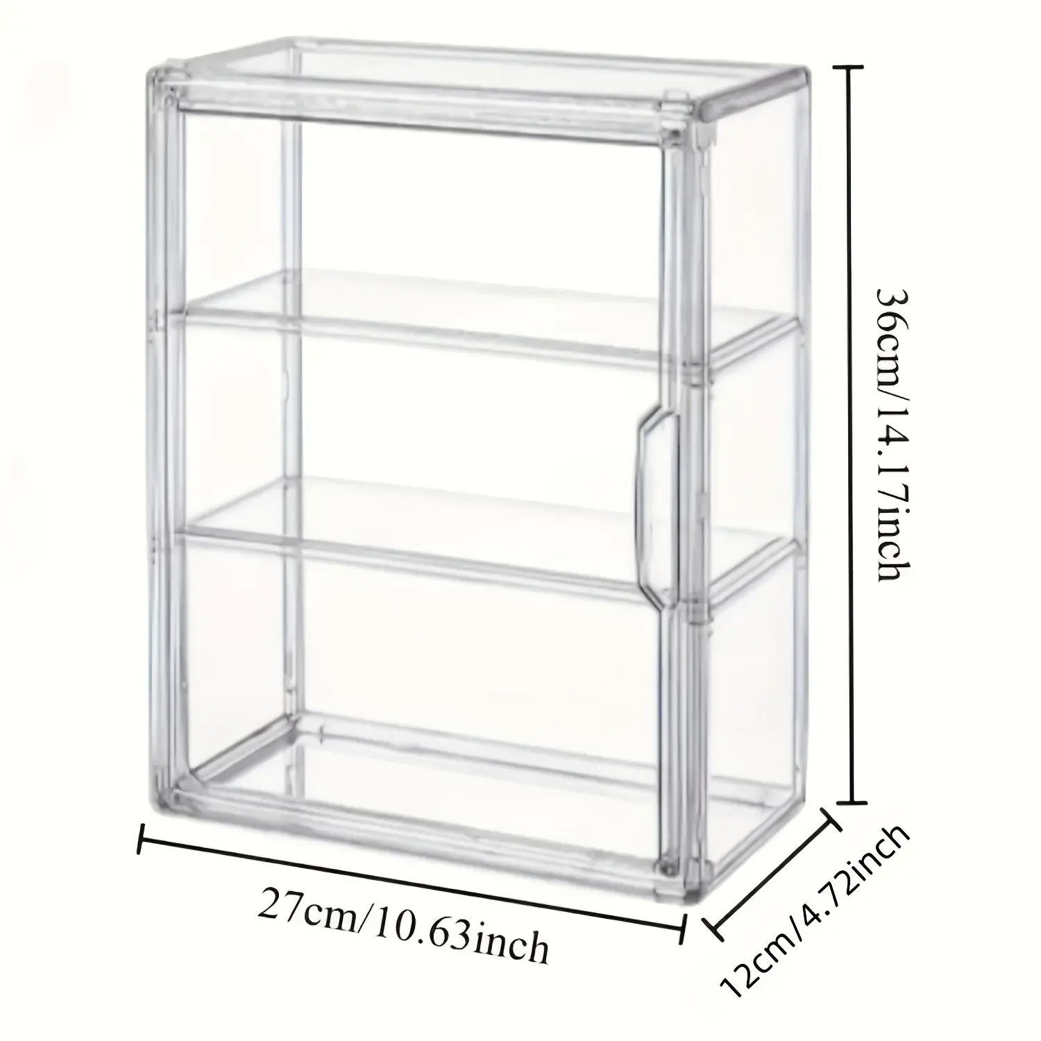 14.17" Large 3-Tier Acrylic Display Stand with Removable Shelves & Magnetic Door, Dustproof Organizer for Collectibles, Action Figures & Mini Models, Clean & Space-Saving