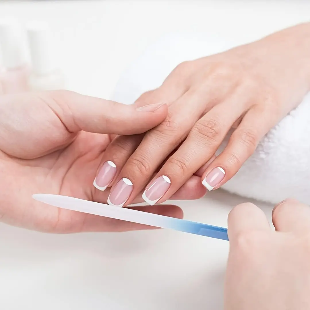 ·Dual-sided etched glass surface gently files nails without tearing or snagging, leaving a smooth, polished finish that strengthens natural nails.