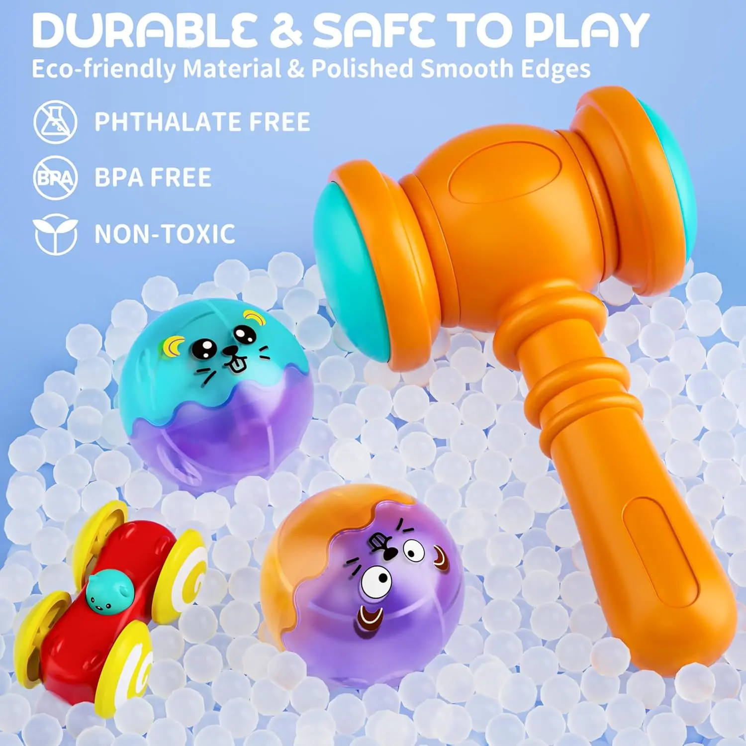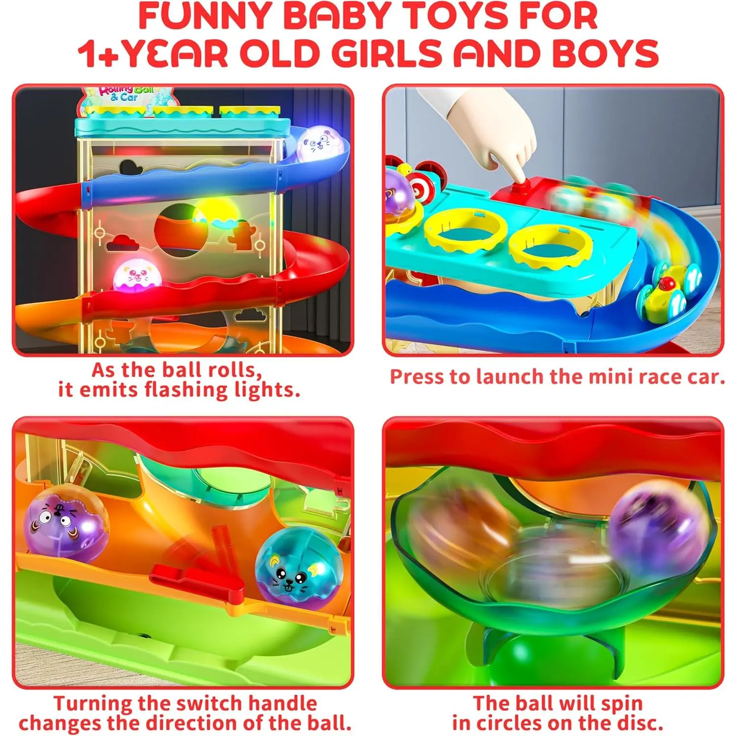 2-in-1 Rolling Ball & Car Ramp Race Track for Toddlers, Hammer Ball Drop Toy for Boys & Girls, Interactive Toys w/Sensor Lights - Montessori STEM Learning Toys - Brithday Gift for Kids 1-5+ Year Old