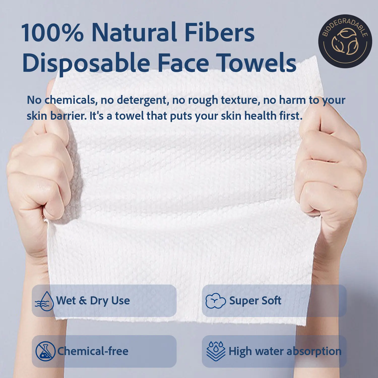 5. 4 Pack - Disposable Face Towels, Disposable Face Towelette, Dry Wipes, Extra Large Size, 100% Natural Fibers, Super-Soft, Extra Absorbent, Makeup Remover, 100% Biodegradable