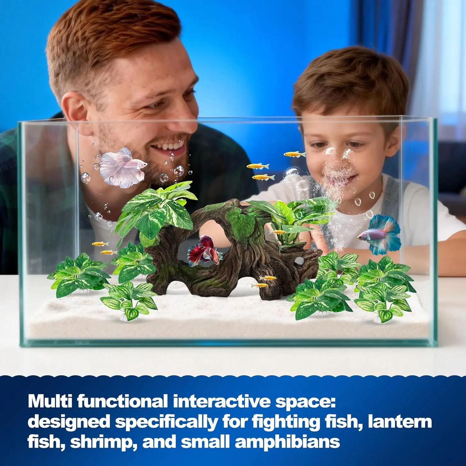 8 Pcs Driftwood Cave Aquarium Decor Decor Silk Aquarium Plants Leaves are Soft and Safe for Aquarium Decoration and Fish Tank Decoration