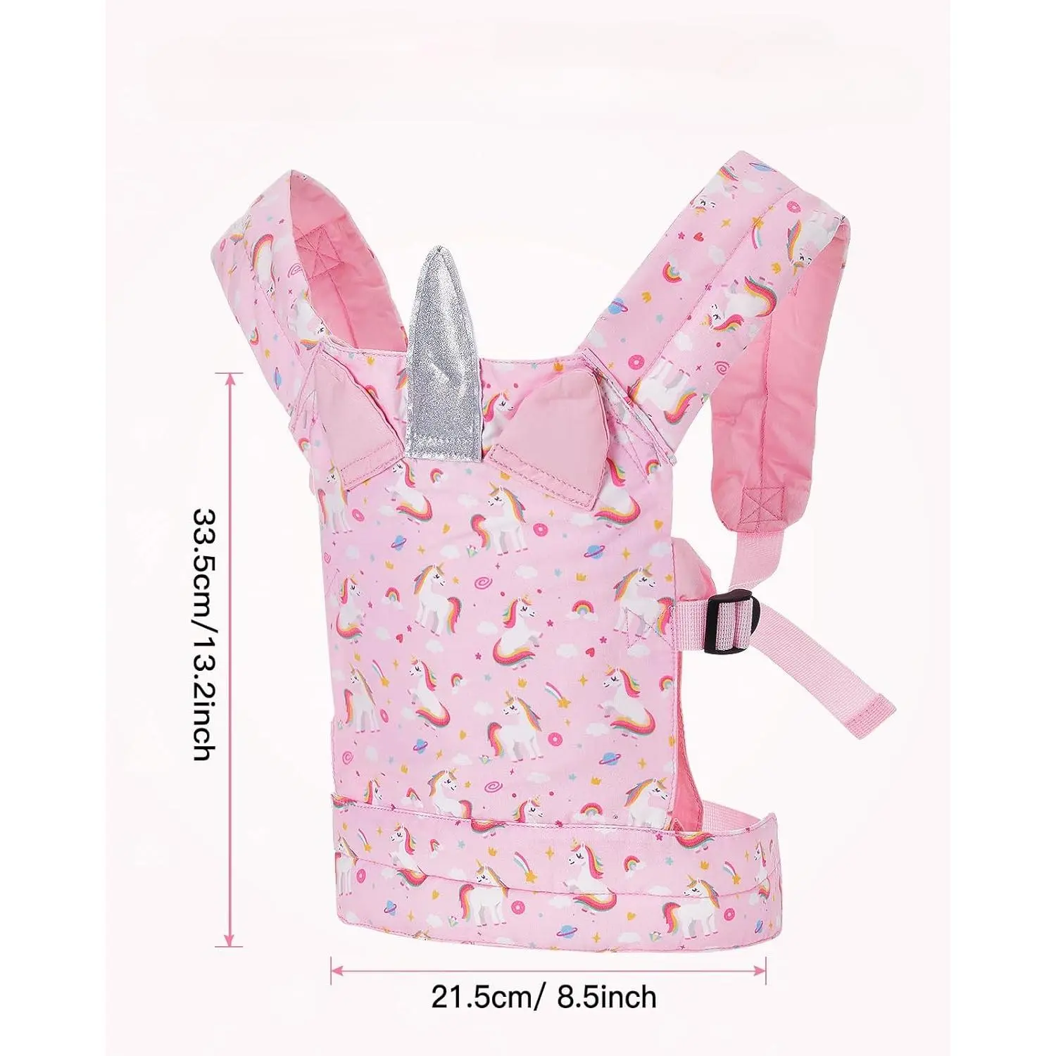 Baby Doll Carrier, Front and Back Doll Accessories Carrier for Little Girls, with Adjustable Straps for Stuffed Animal Reborn Baby Doll, Pink Unicorn