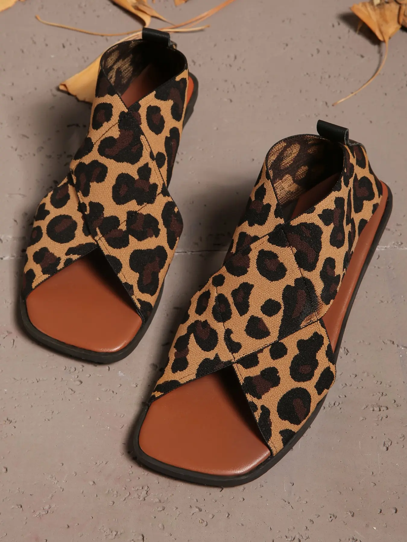 New Leopard Print Cross Strap Wedge Sandals, Square Toe Open-Toe Design, Comfortable Fit, Pull Ring for Easy On/off, All Seasons